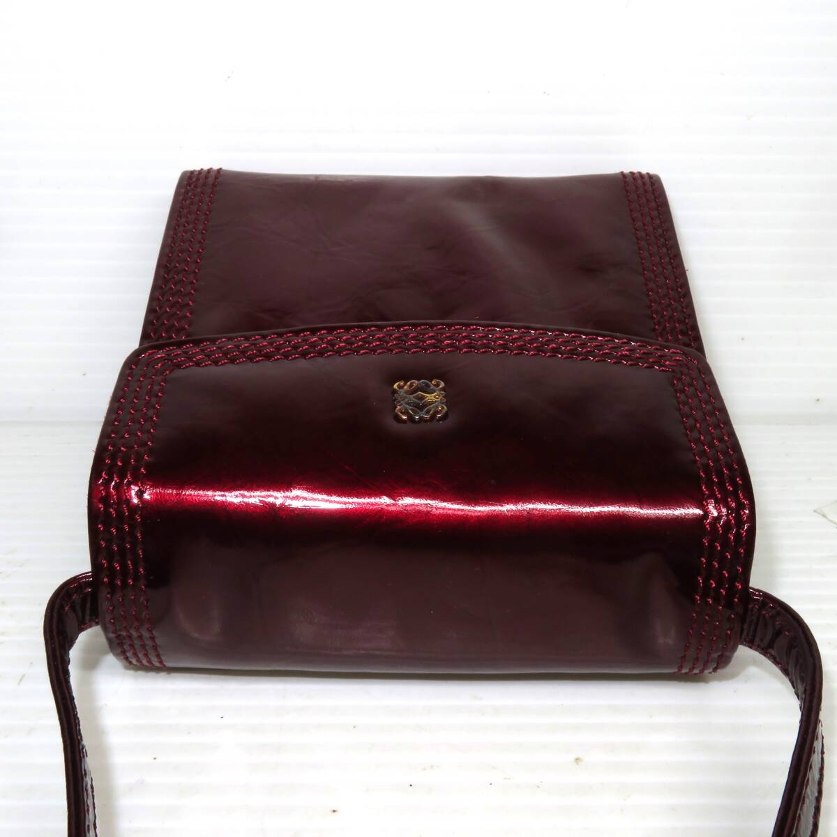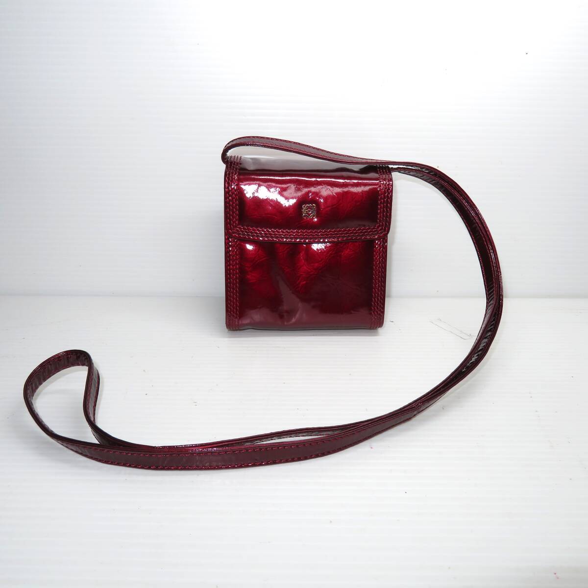 ロエベ ショルダーバッグ エナメル ワインレッド