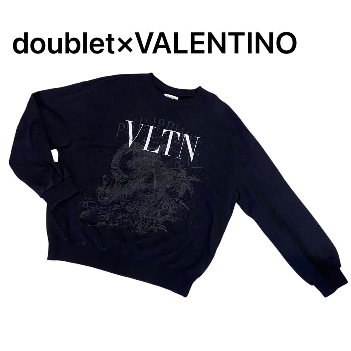 doublet×VALENTINO ダブレット×バレンティノ エンブロイダリースウェット コラボ トレーナー トップス ブラック メンズ Sサイズ