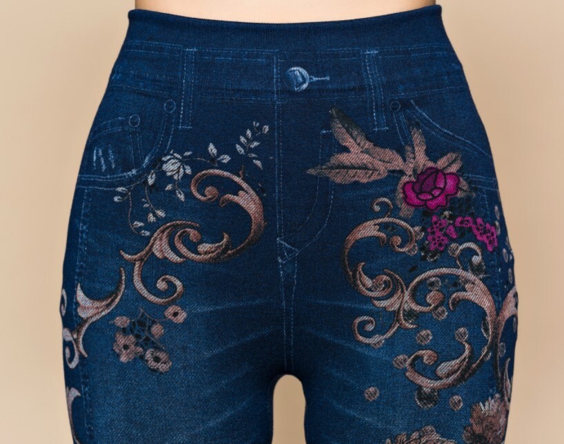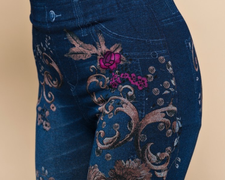 ベーシックなデニムにあって個性的な花柄が目を引きます。