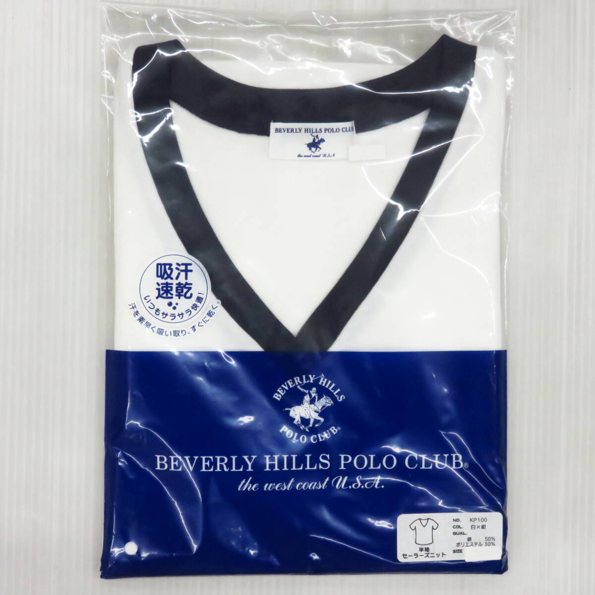 ●LLサイズ新品2,750円●POLOCLUB半袖インナー Vネック 白セーラーズニット ポロクラブ 吸汗速乾 綿50% ポリエステル50% KP100中学生高校生