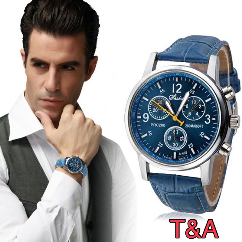 腕時計 時計 メンズ 高品質 レザー 革 ベルト レザー ベルト アナログ クォーツ ウォッチ 軽量  男女兼用 ブランド ブルー