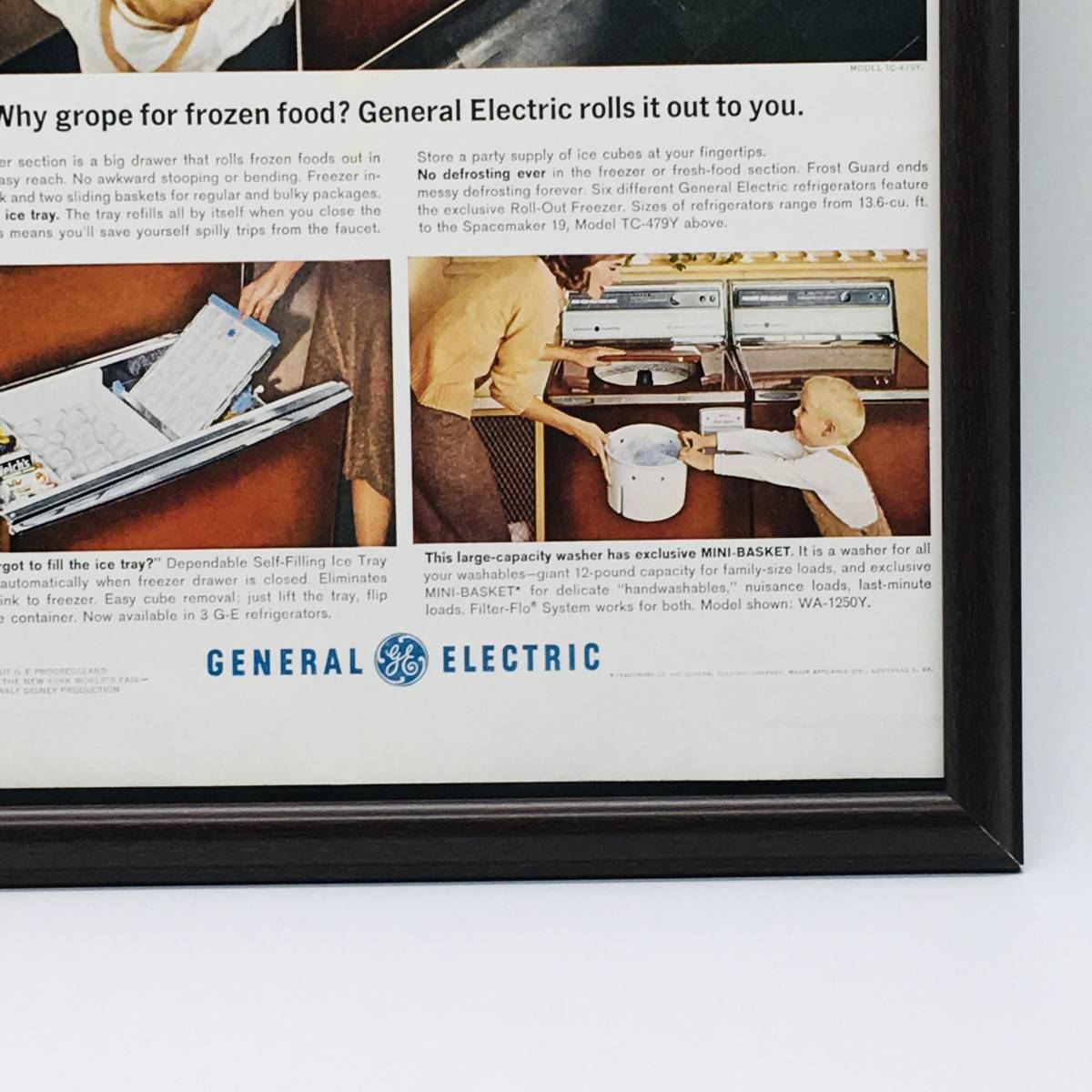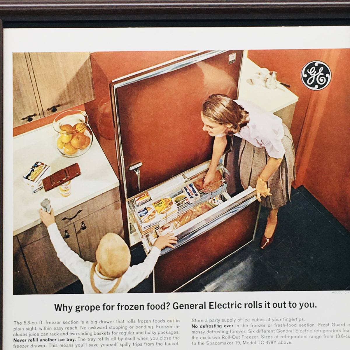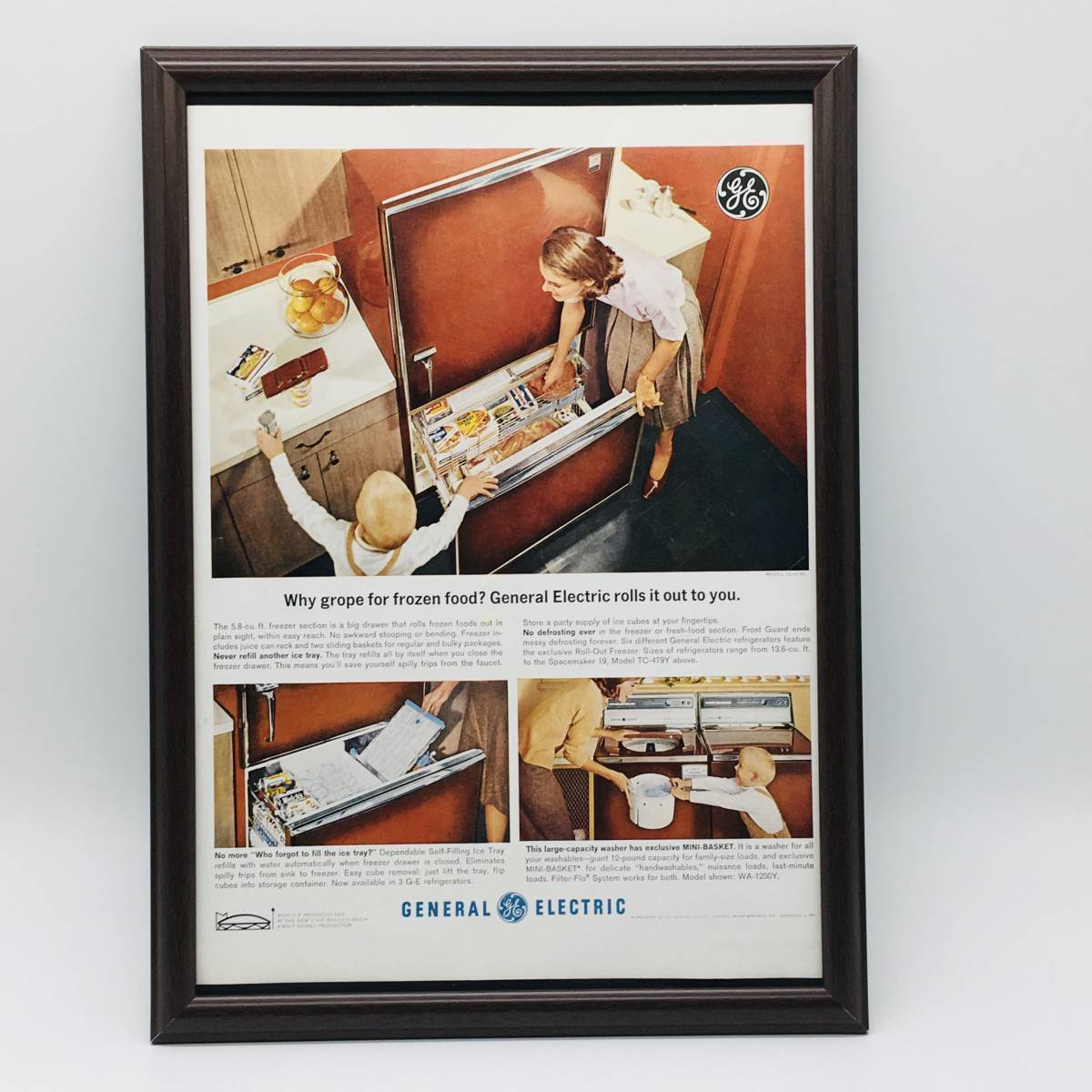 『 ゼネラルエレクトリック 冷蔵庫 』ビンテージ 広告 60年代 フレーム 付 ポスター 当時物 額付 LIFE アンティーク GENERAL ELECTRIC