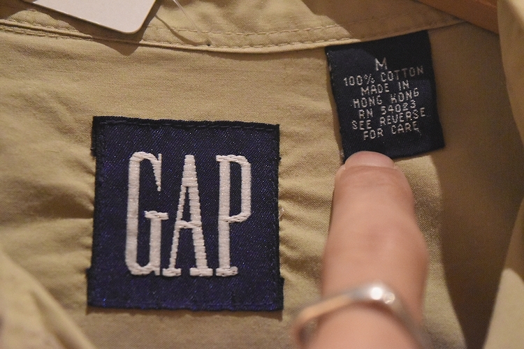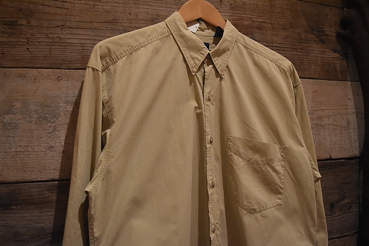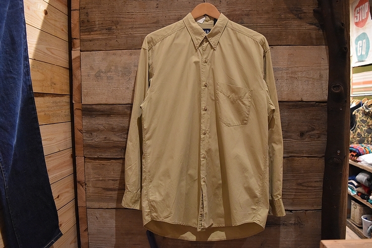 グッドレギュラーアイテム◎OLD GAPオールドギャップ長袖ボタンダウンオールコットン無地シャツMベージュ系100綿アメカジストリートt41