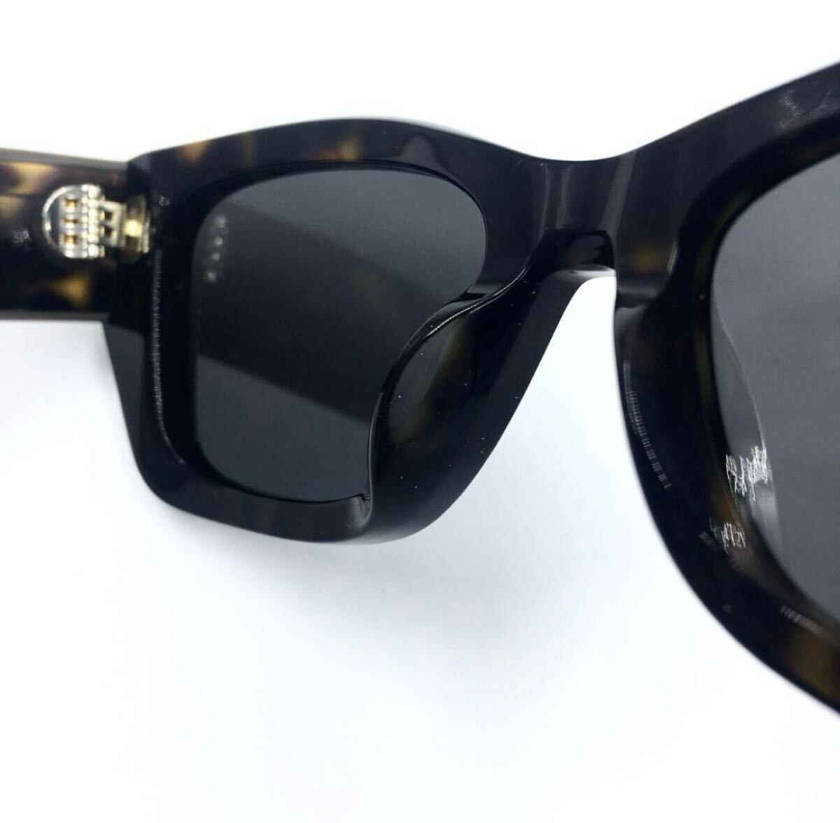 上品なハバナブラウンのフレームに、グレーのカラーレンズを組み合わせたスタイリッシュなモデルです。