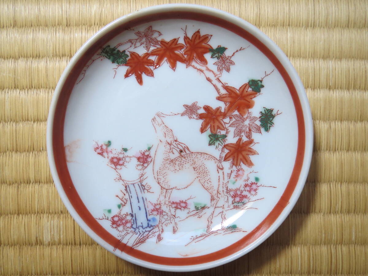 印版 赤絵 紅葉に鹿 図 小皿4枚