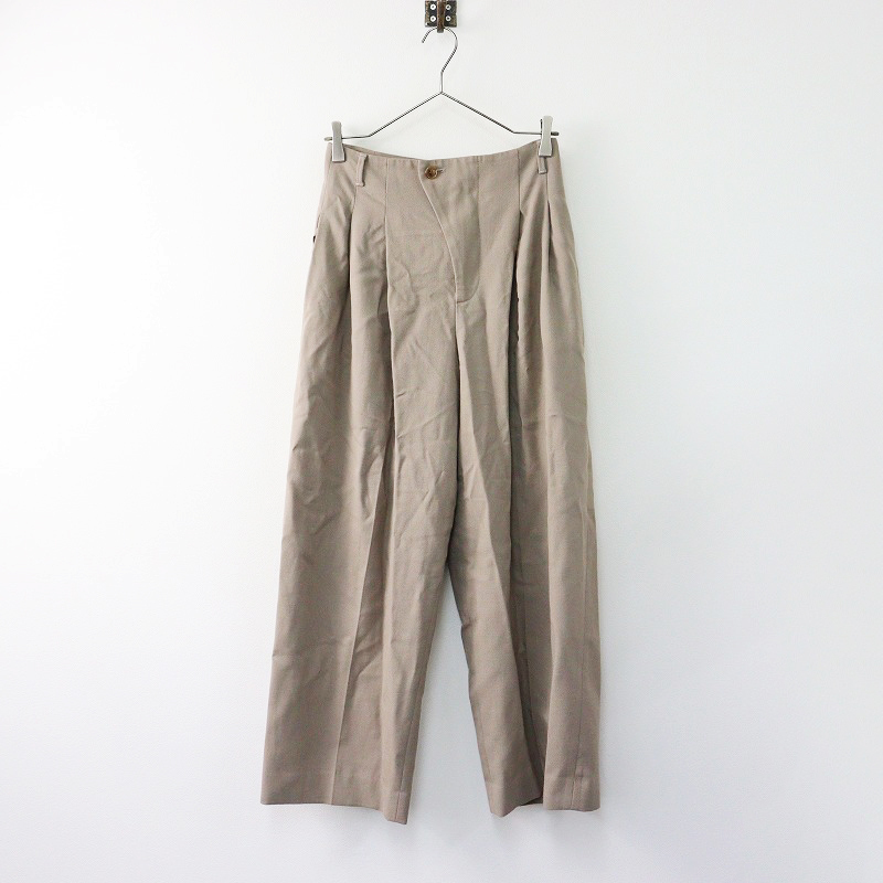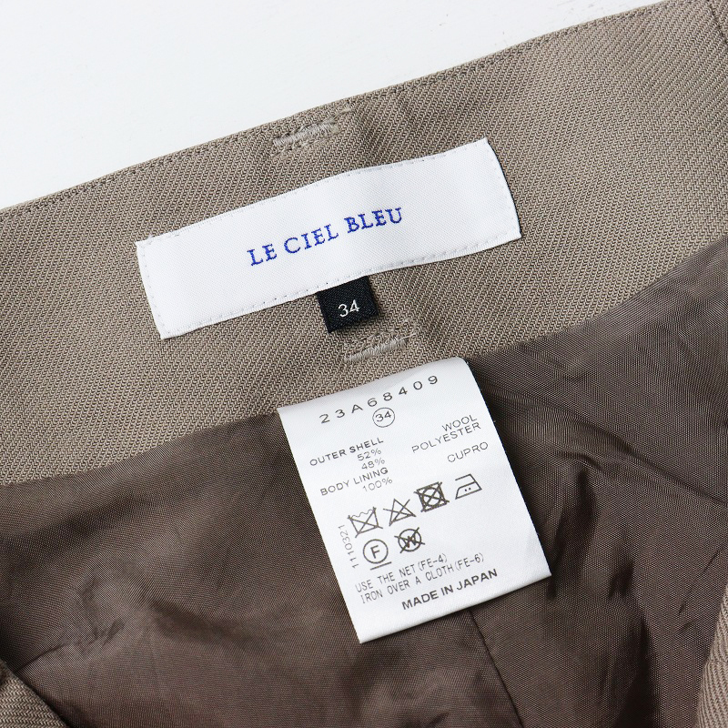 ルシェルブルー LE CIEL BLEU Curve Fly Front Wide 34/ベージュ ワイドパンツ ウール タック センタープレス【2400014129601】