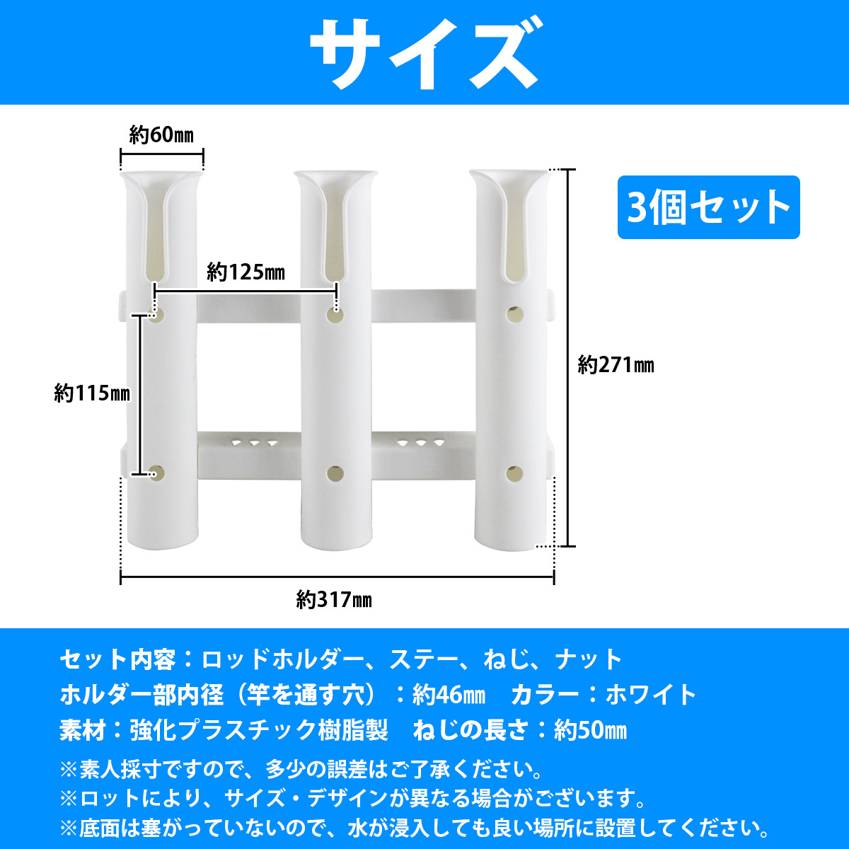 【3連 3個セット】ロッド ホルダー 竿 立て 置き 入れ 釣り フィッシング スタンド ネジ付 固定 船 漁船 ボート 白 ホワイト