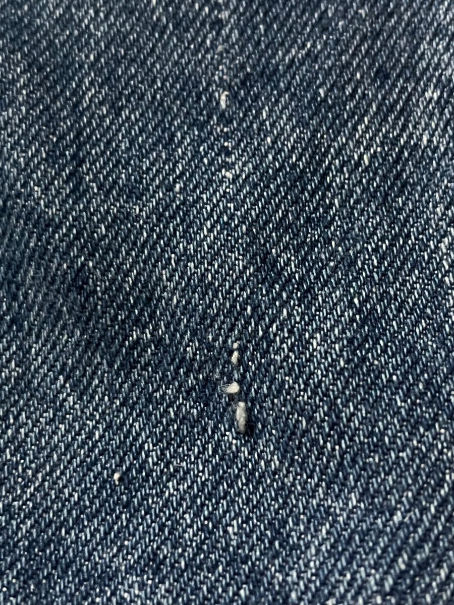 こちらは右足もも付近にほんの少し伝線がある為と思われます。