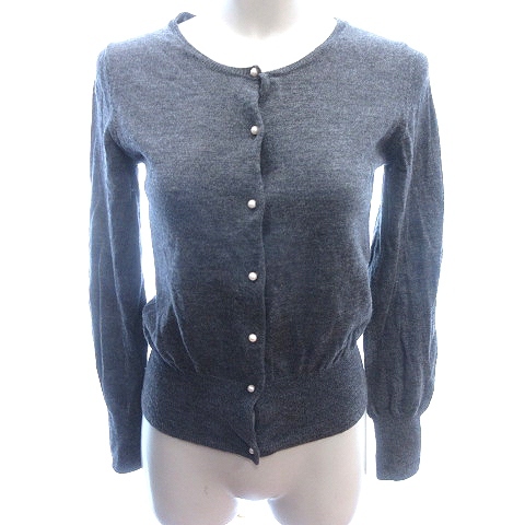 グリーンレーベルリラクシング ユナイテッドアローズ green label relaxing ニット カーディガン フェイクパール 長袖 38 M グレー