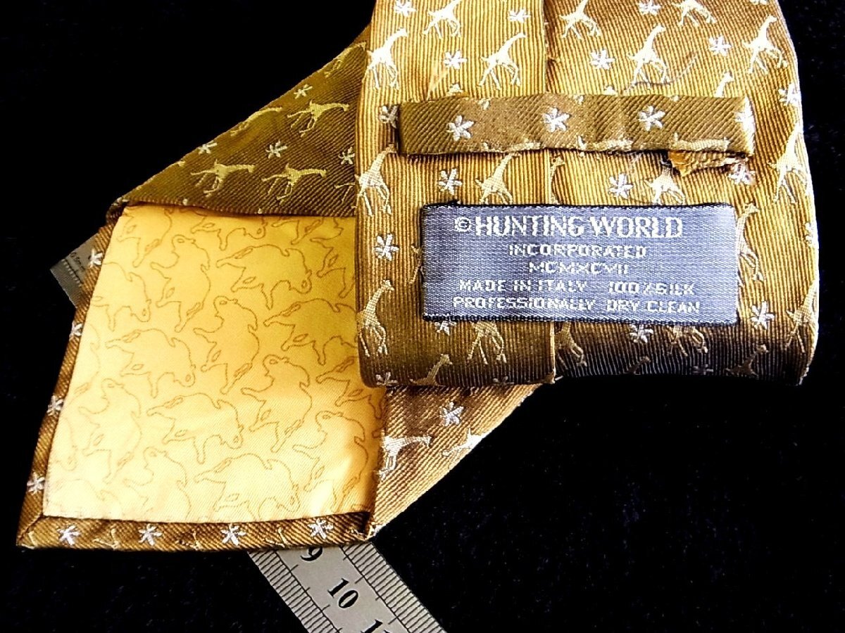 ♪今週の特売980円~♪2140♪状態並品【Hunting World】ハンティングワールド【キリン 動物 花 小花 柄】ネクタイ♪