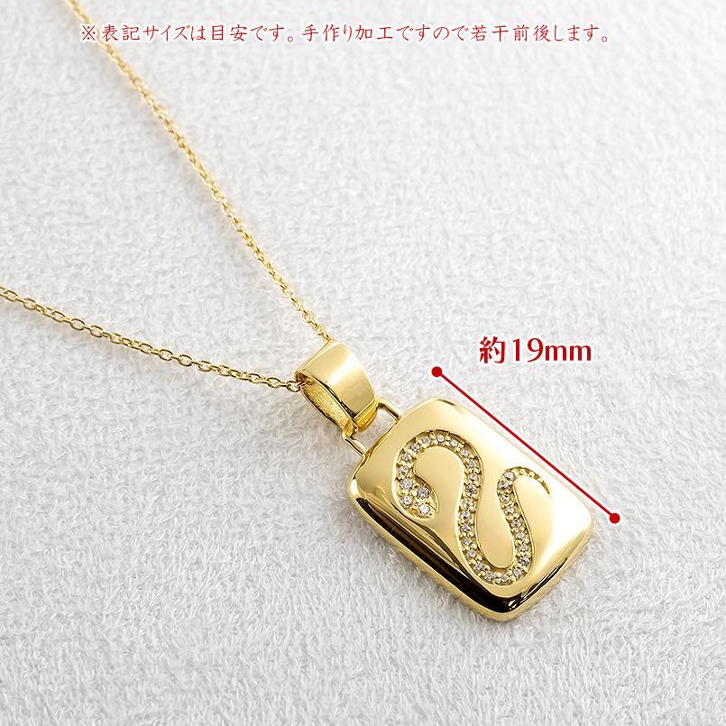 商品コード 241003401dycm 発送は3週間ほどとなります。 プレートインゴットタイプのベースにダイヤモンド蛇のシルエットが浮かび上がるペンダントトップ2025年巳年の蛇は吉兆・復活・再生・金運・神の使いと言い伝えられています。日常のファッションの中にさりげなく蛇をお守りとして身につけられ、悪目立ちしないデザイン材質 イエローゴールドK18(品質を保証するK18の刻印)チェーン シルバー925 (イエローメッキ 50cm)※サービスチェーンのデザインは予告なしに変更する場合がございます。宝石 天然ダイヤモンド トータル 0.16ct大きさ プレート 縦約 19mm 横約 14 mmバチカン内径 約5.5mm×4mm厚み 約 2mm(裏抜き有り) バチカンを含んだ全長 約 29mm大きめのバチカンなので、喜平ネックレスにも対応可能さらに大きく加工ご希望の場合はお見積りさせて頂きます。2025年 巳年 蛇 へび ヘビ スネーク 贈り物 プレゼント ギフト 記念日 ユニセックス LGBTQ 男女兼用 バディジュエリー ペンダントトップ ペンダントヘッド アレルギーフリー ジェンダーレス ミニマルジュエリー パーソナルジュエリー バディジュエリー お守り 福袋 30代 40代 50代