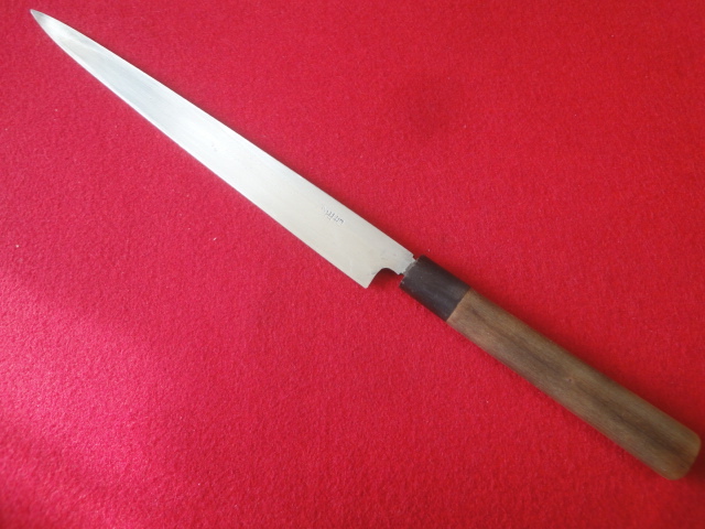 【源正吉】 フグ引き包丁 刃渡28.2㎝ 全長43.7㎝ 峰厚3.1mm※片刃 中古品 全国一律送料1200円