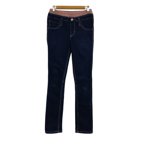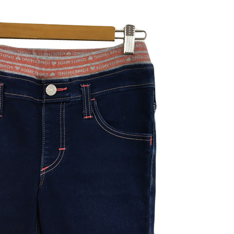 サムシング パンツ ジーンズ デニム スキニー ロング イージー ロゴ 切替 ストレッチ ウエストゴム 160 紺 ピンク ネイビー キッズ