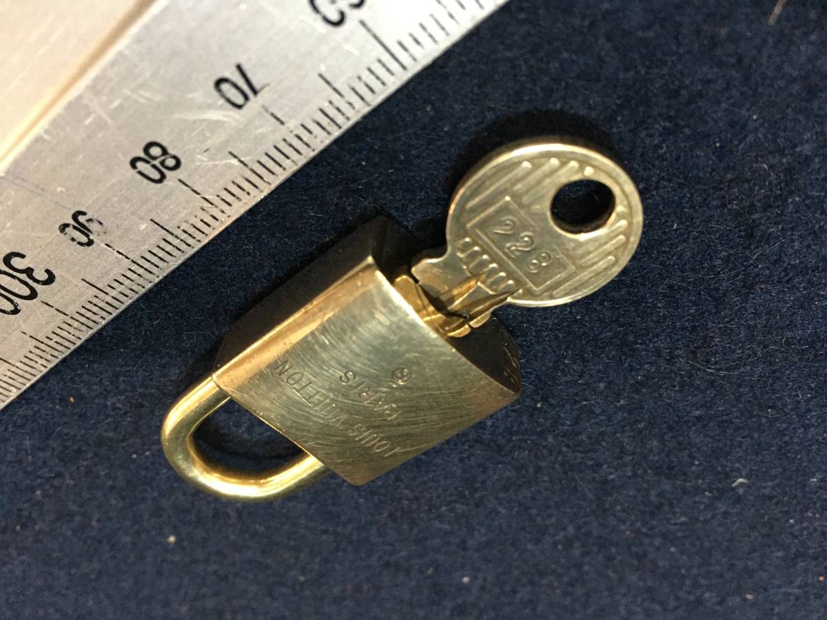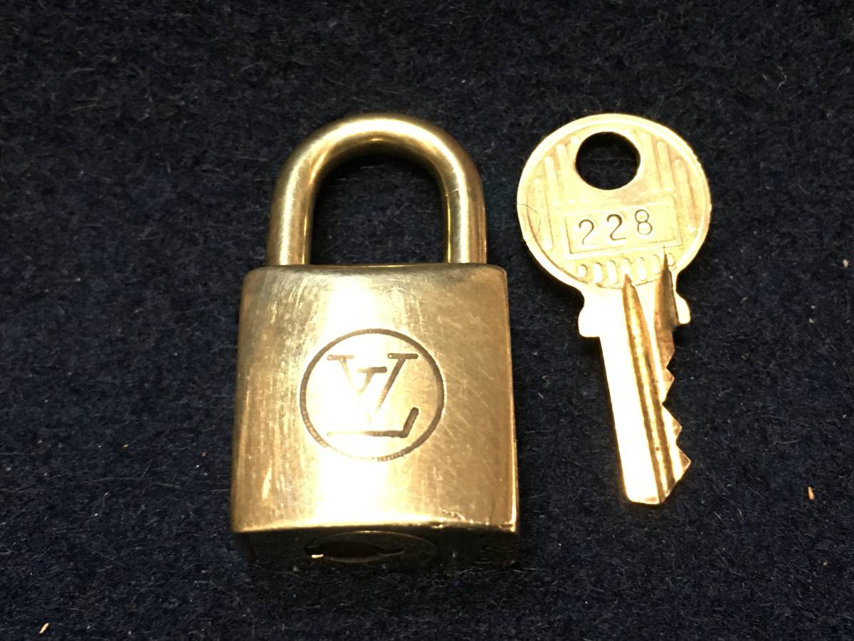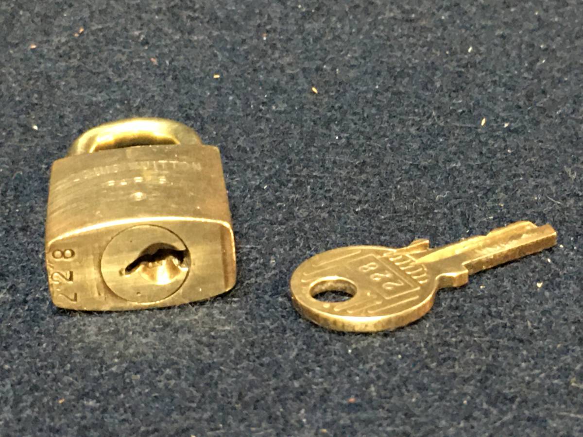 ★【逸品堂】★ 228 ルイヴィトン LOUIS VUITTON 旧型 パドロック カデナ 南京錠 カギ付き鍵 真鍮 金属 珍品 美品 キーリング キーホルダー