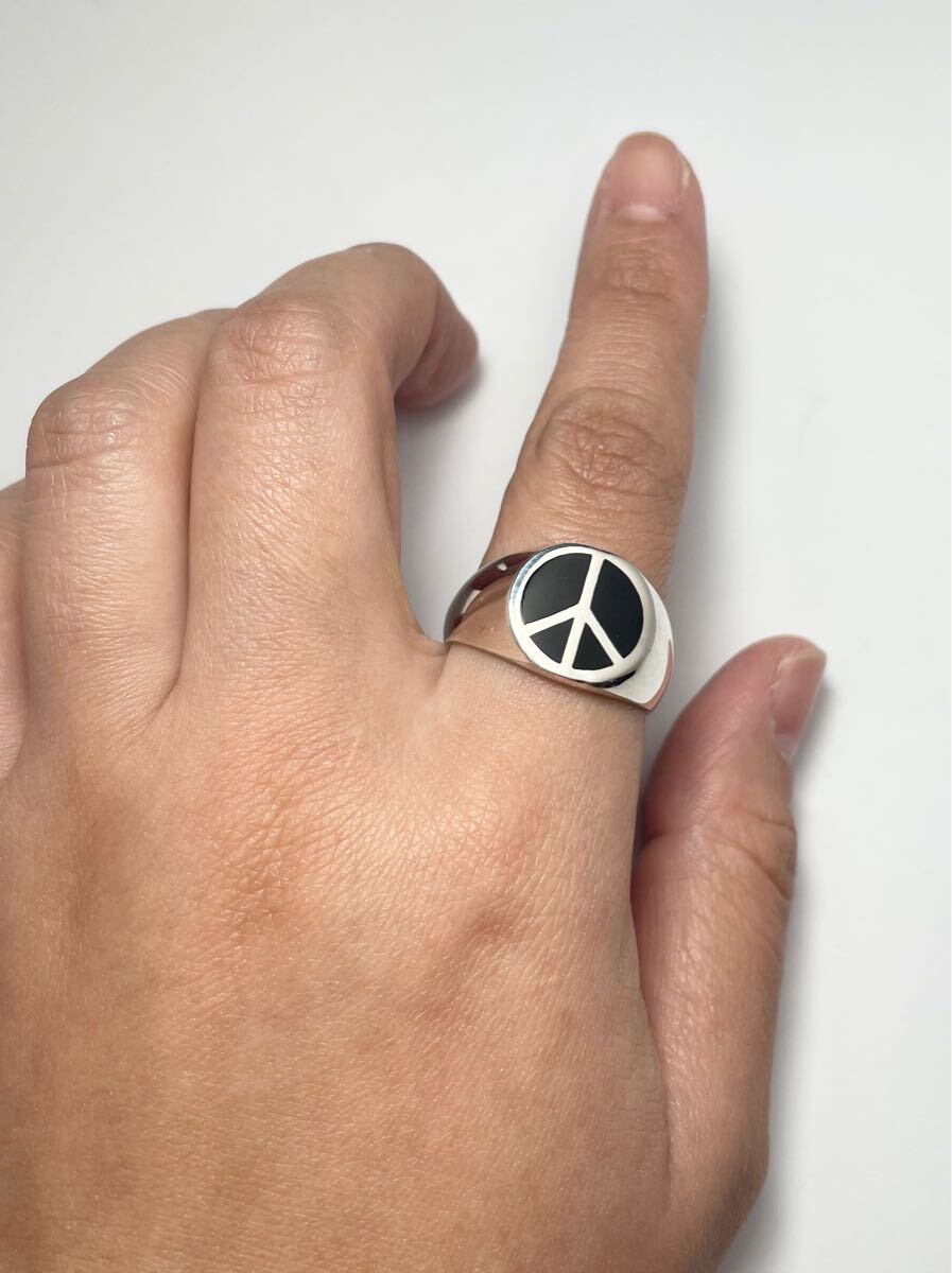 ピース ピースマーク 平和 平和の象徴 愛と平和 世界よ平和に 70年代 印台 オーバル シルバー925 リング