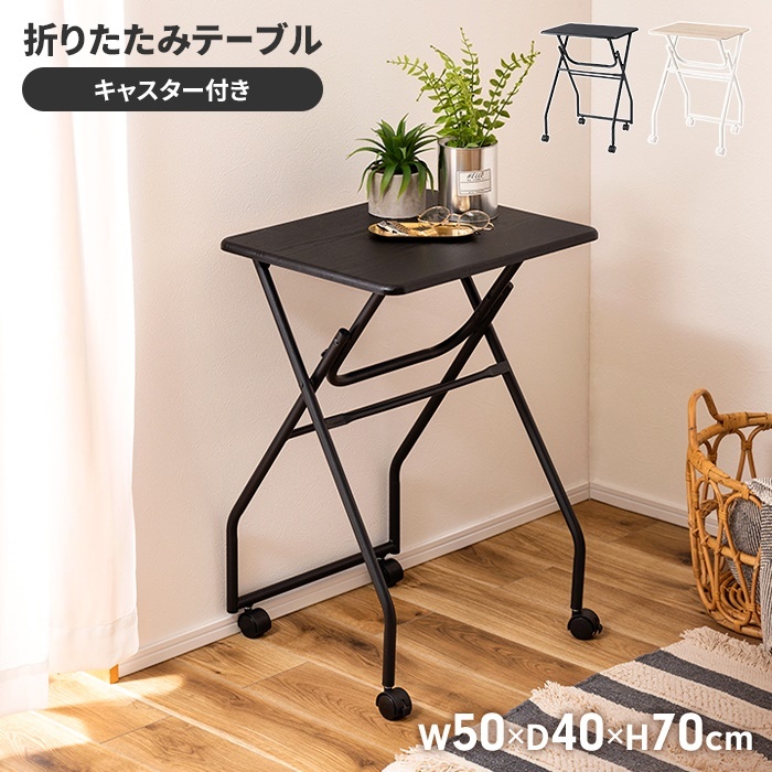 | 折りたたみ式テーブル ハイテーブル キャスター付き 移動 転がる おしゃれ 高さ70cm キッチン 作業デスク 机 PCデスク 簡易 スリム コンパクト シンプル ブラック 黒 ホワイト 白 幅50 奥行40 木目調 ストッパー |