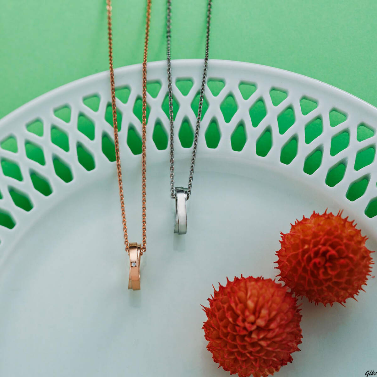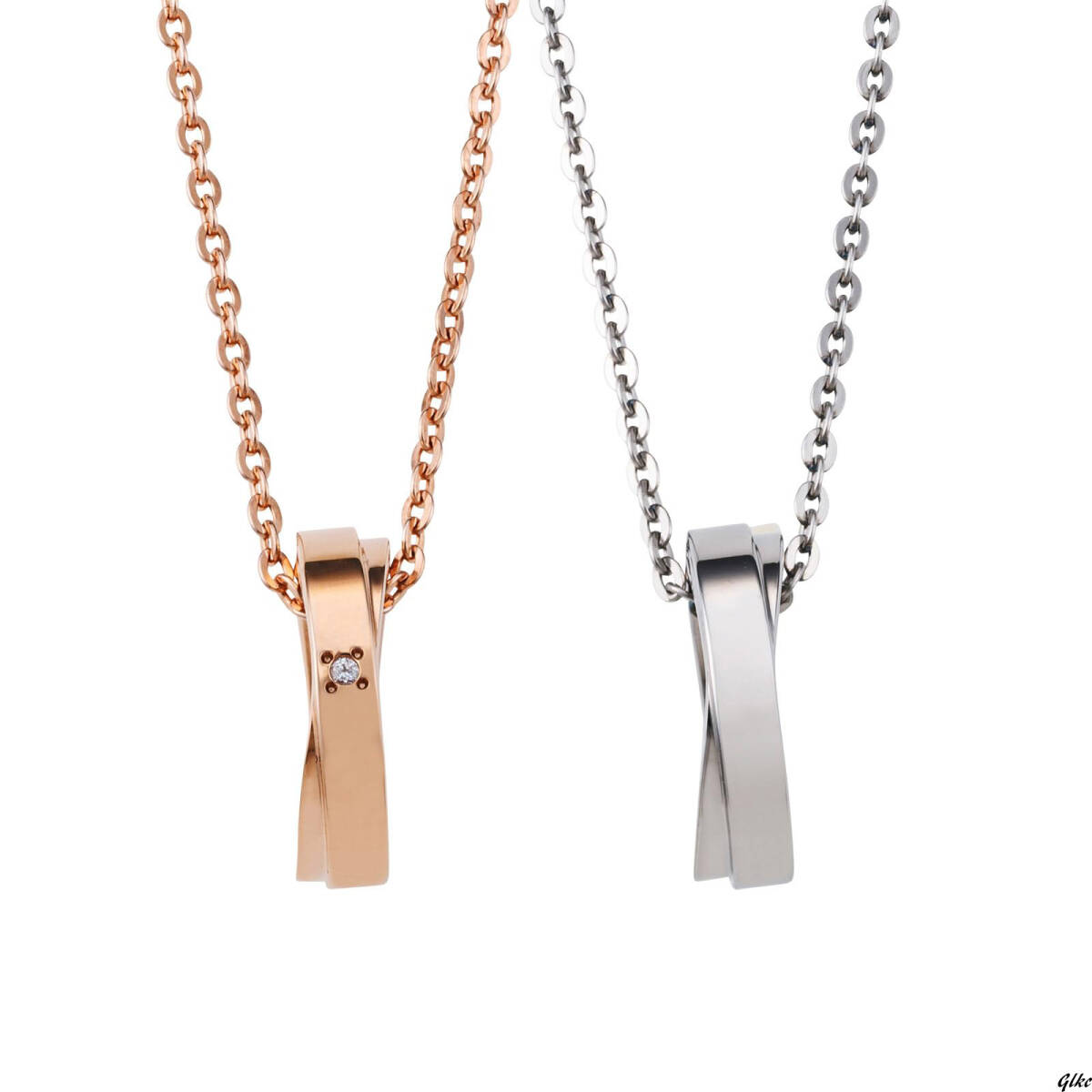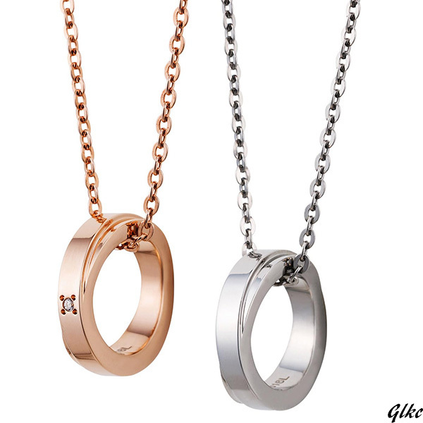 小さなリングをモチーフにしたサージカルステンレス316L製のペアネックレス。