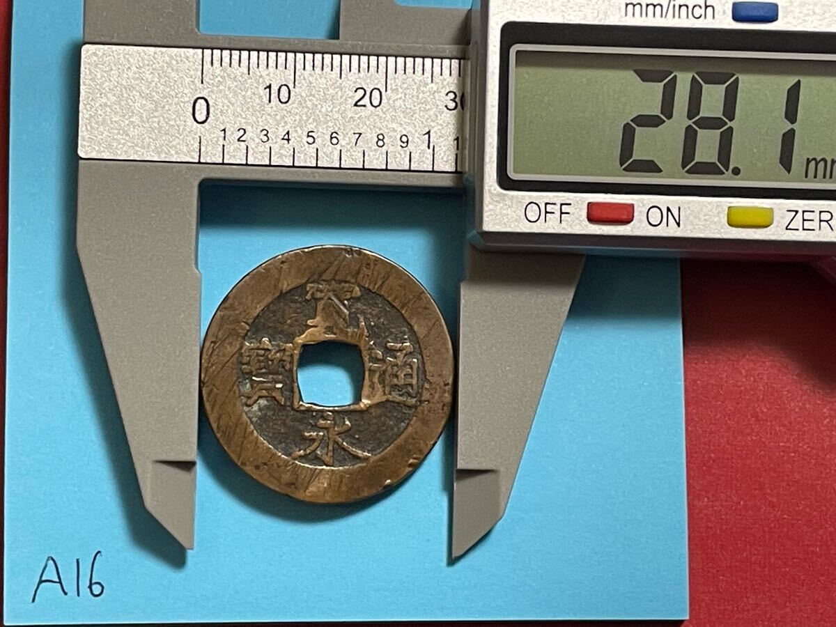 ★☆★【A-16】《密鋳銭?踏潰銭?》寛永通宝 四文銭 11波 文字判別可 現物はやや銅に近い赤みを感じます ★☆★