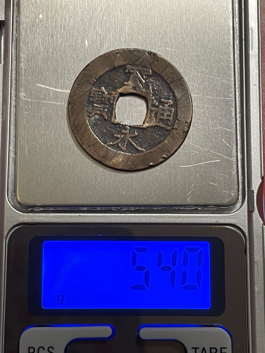 プロでないと思いますが、多少古銭に知識のある方が見て、おそらく密鋳銭(密造品)や踏潰銭ではないかと選別して頂いたうちの1枚です。その知人が1枚5,000円で引き取ってくれたので、それ以上の価値はあるのかと思います。