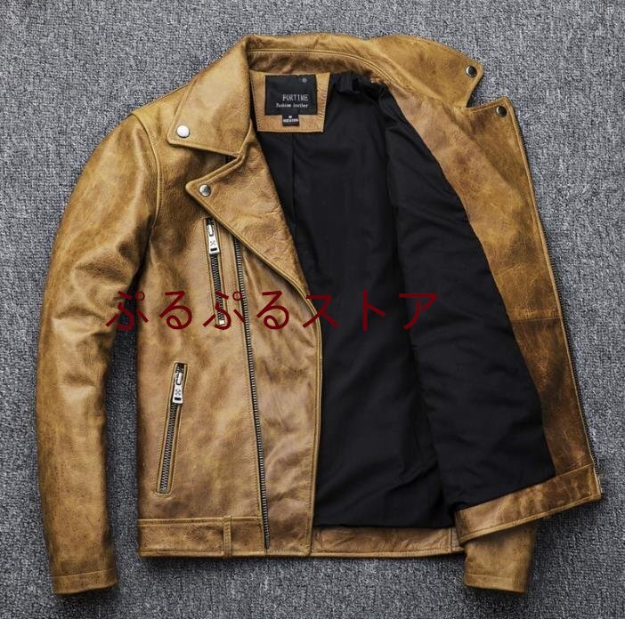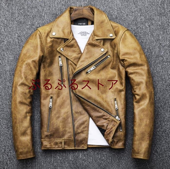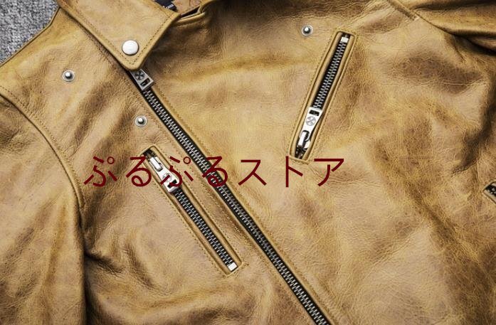[ぷるぷるストア]カウハイド スタンダードスタイル ダブルライダース レザージャケット ブラウン サイズ選択可 タンニンなめし 染料仕上げ