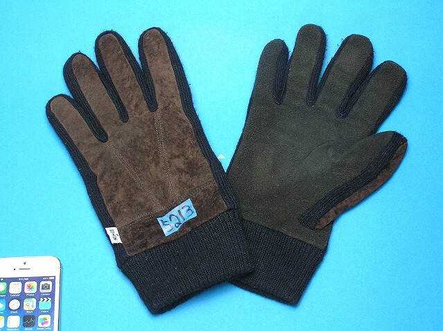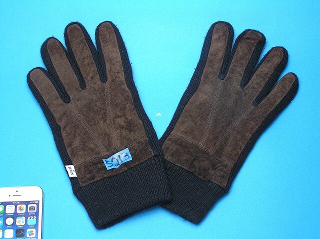 ニット手袋 ♪ EDWIN エドウイン ♪ スエード ヌバック ベロア本革 ML-size相当 全長25㎝×幅11㎝ 茶系 メンズ&レディース■5213 | |