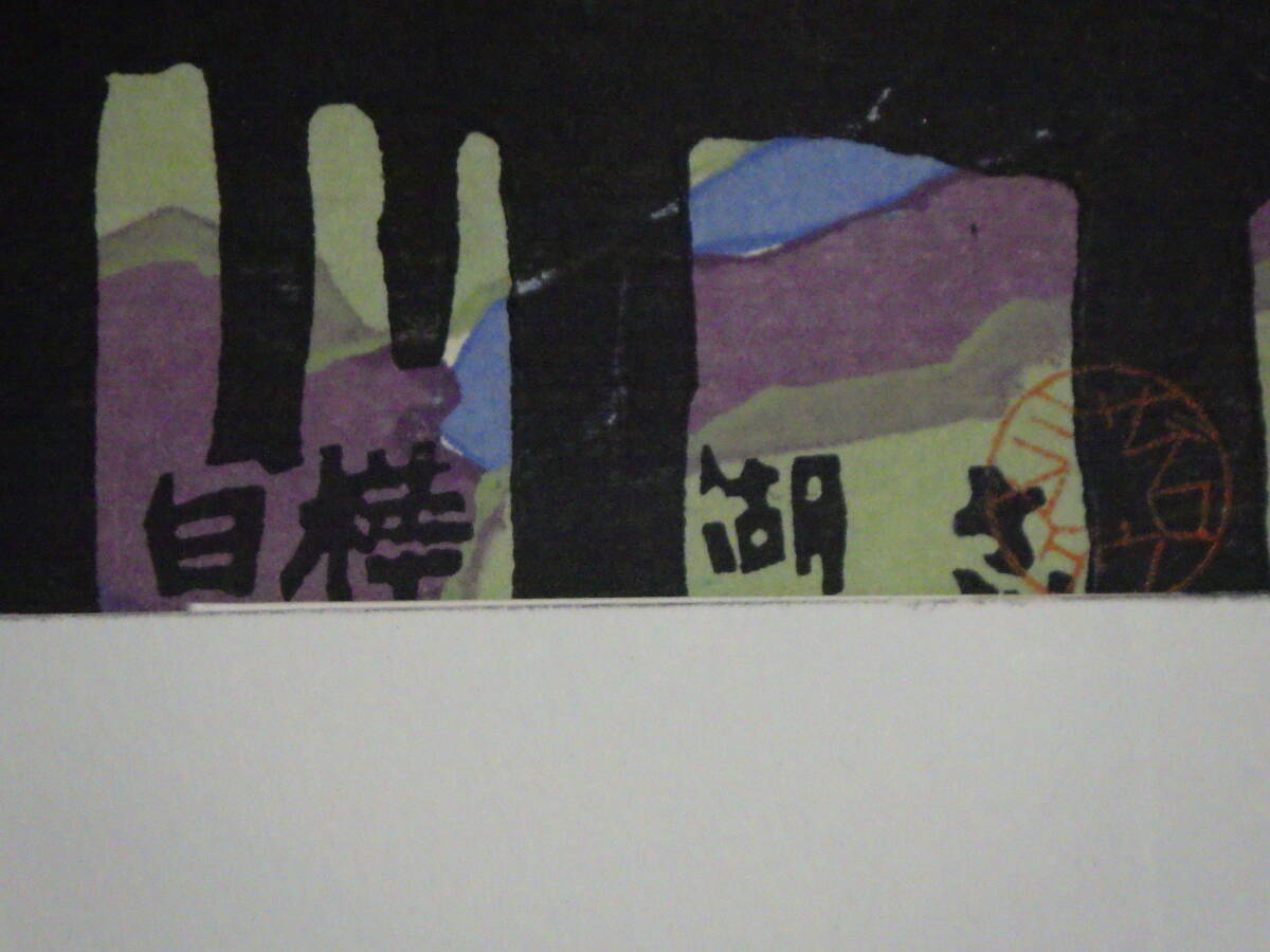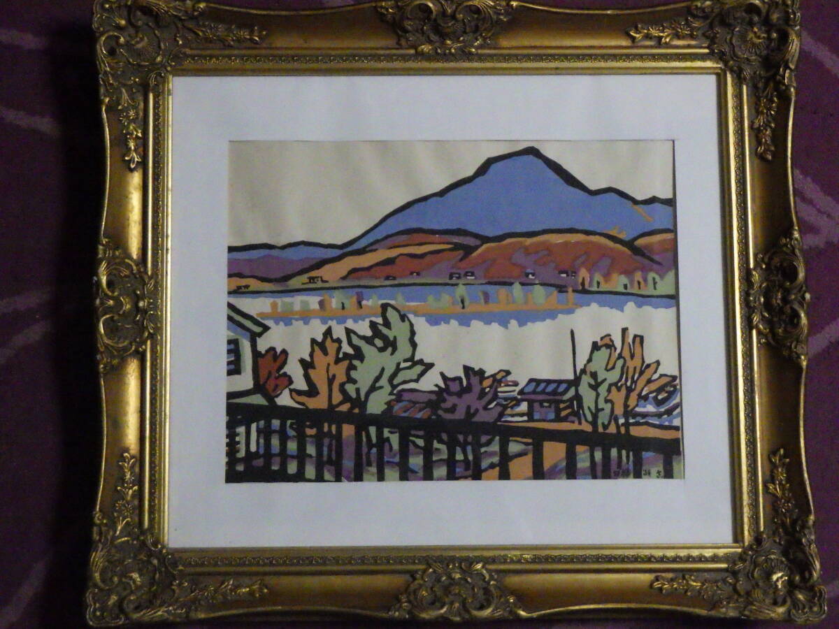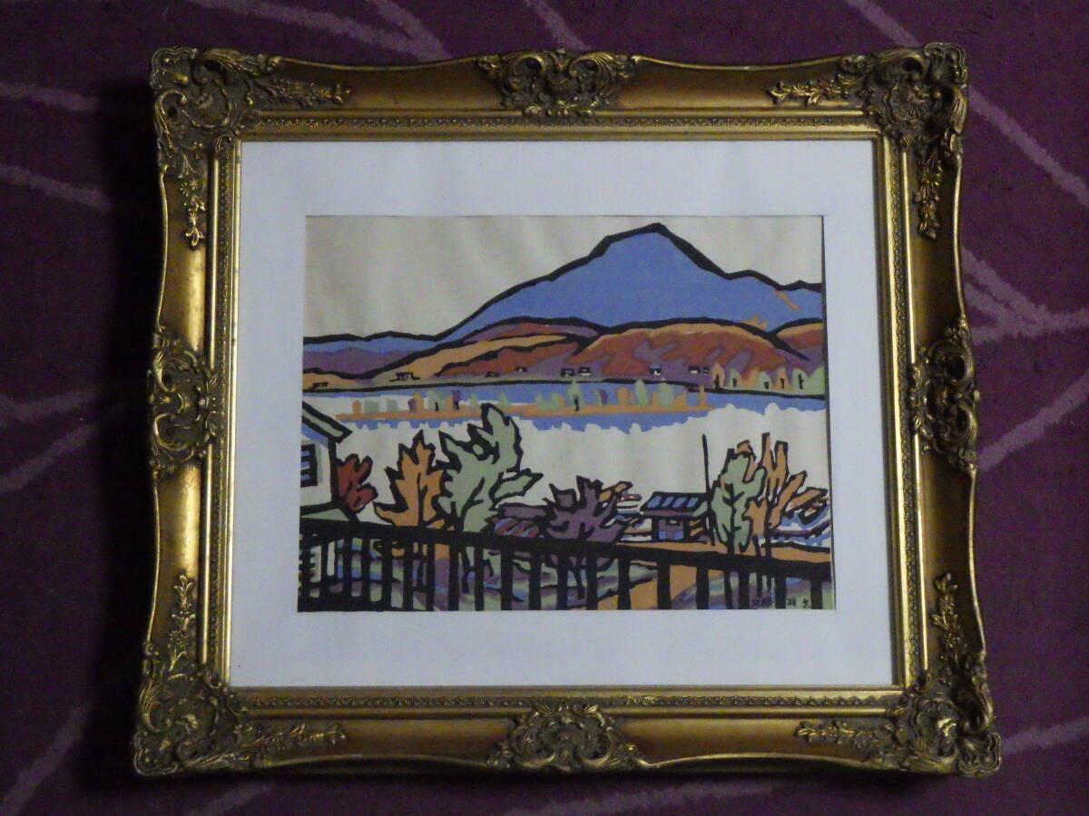 真作保証 宮田三郎 木版画 白樺湖 番号 サイン 落款 額装 版画の巨匠 立派な額縁 縦55㎝ 横62.5㎝ 高さ8㎝ 長野県