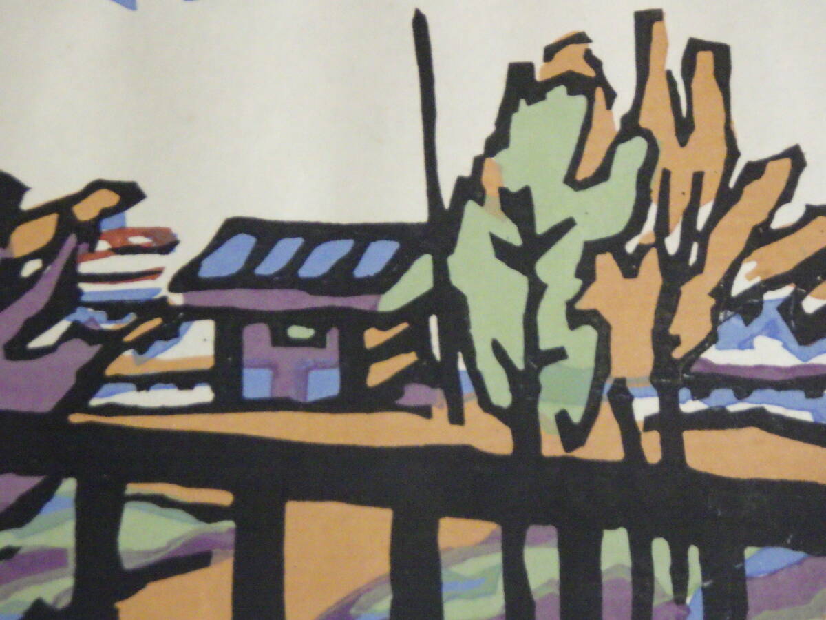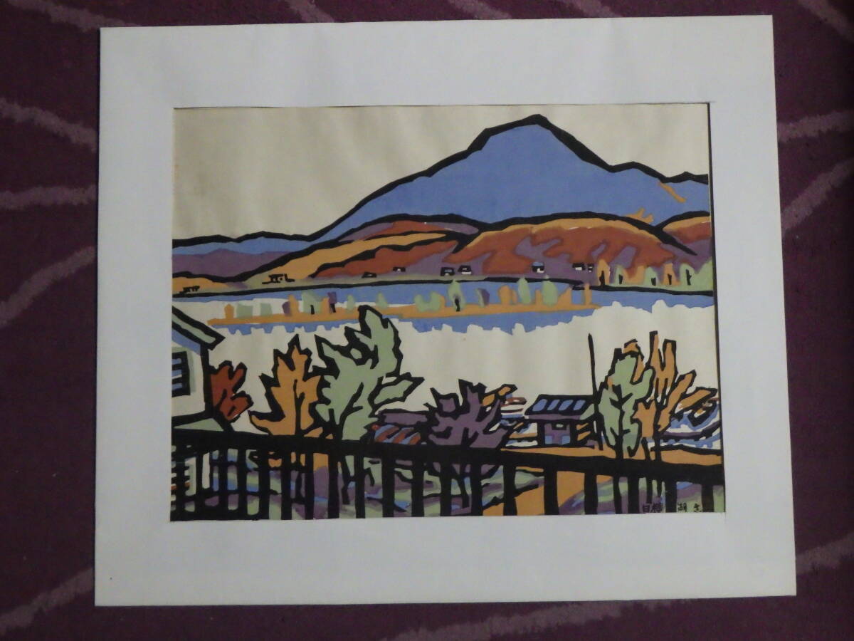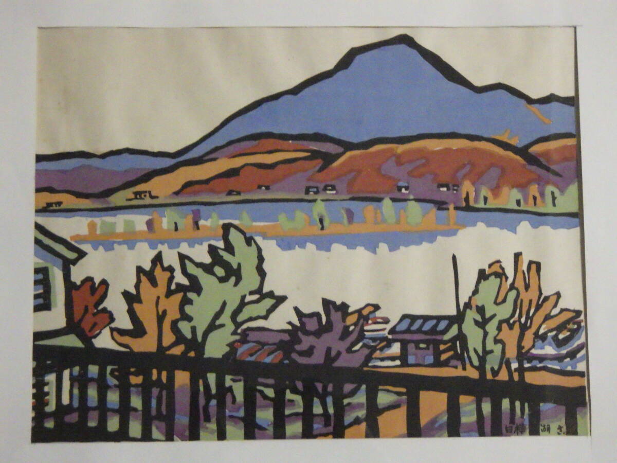 真作保証 宮田三郎 木版画 白樺湖 番号 サイン 落款 額装 版画の巨匠 立派な額縁 縦55㎝ 横62.5㎝ 高さ8㎝ 長野県
