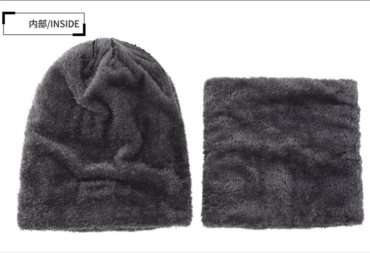 カーキ色ニット帽 男女兼用 ネックウォーマーセット 秋冬 伸縮素材 裏起毛 防寒