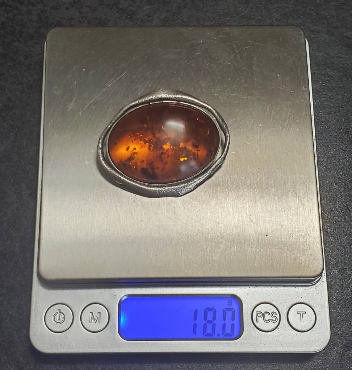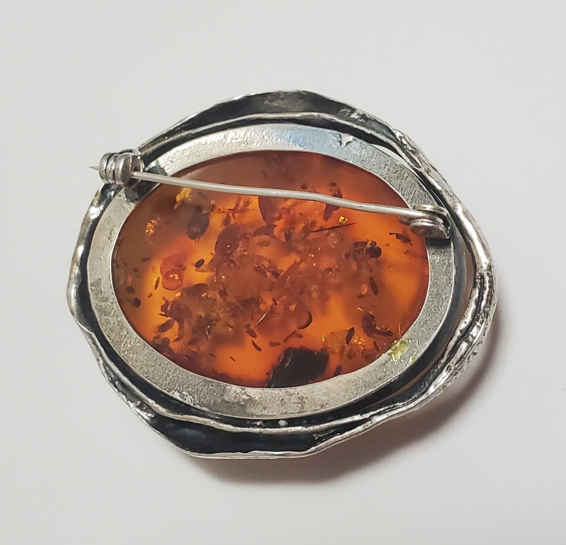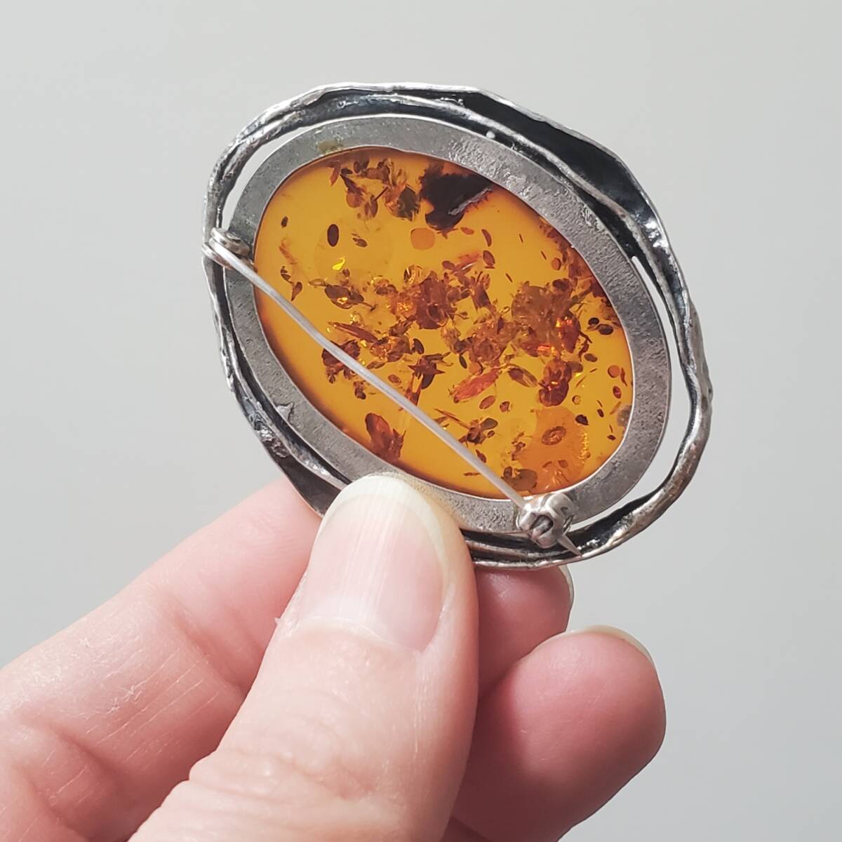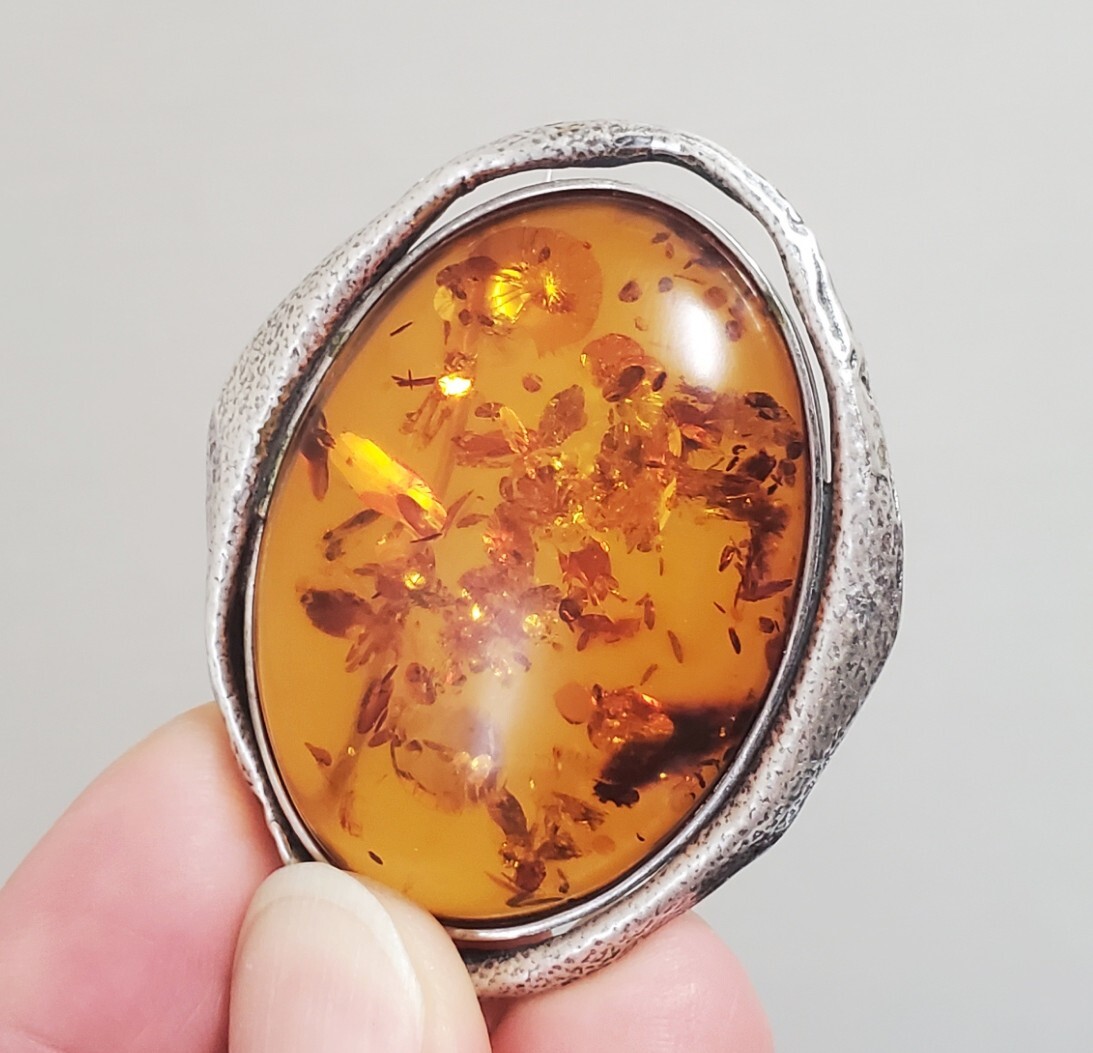 超レア SILVER 925 シルバー925刻印 コハク 琥珀 ブローチ レディース 18g 5㎝ きれいめ