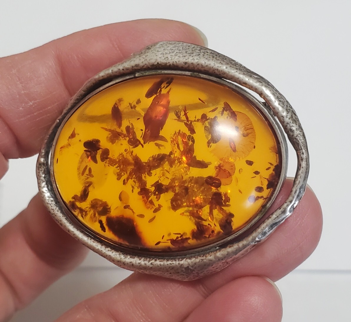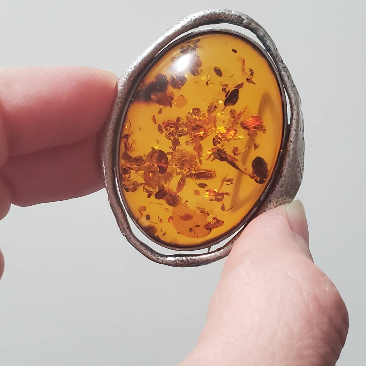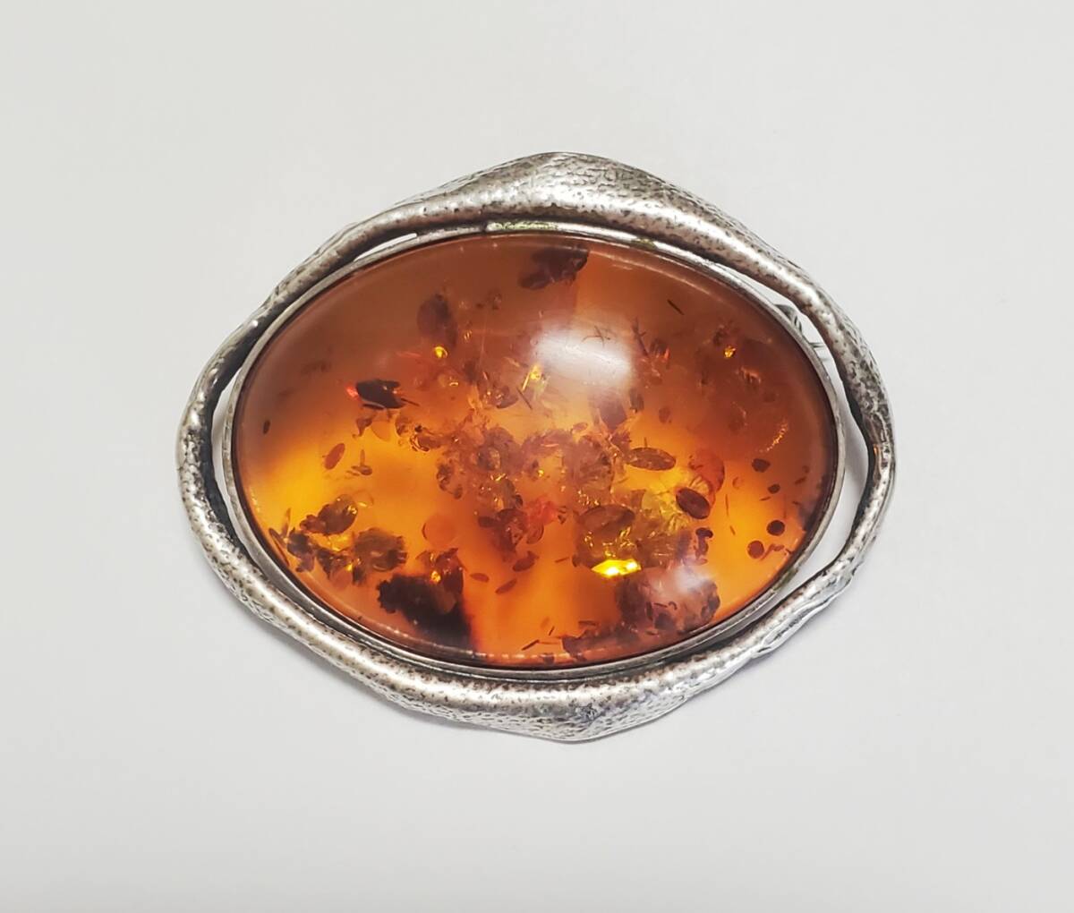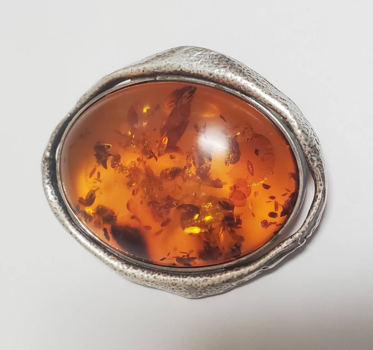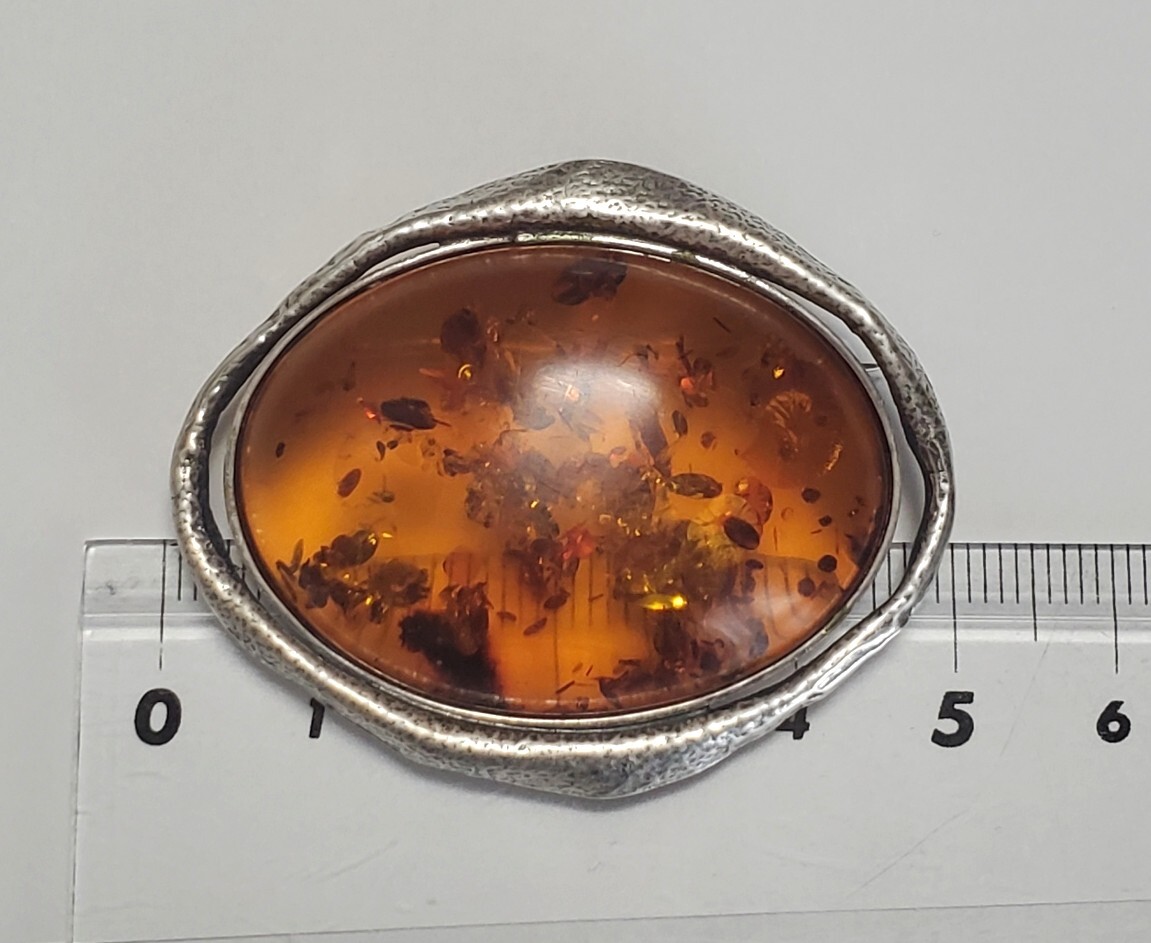 超レア SILVER 925 シルバー925刻印 コハク 琥珀 ブローチ レディース 18g 5㎝