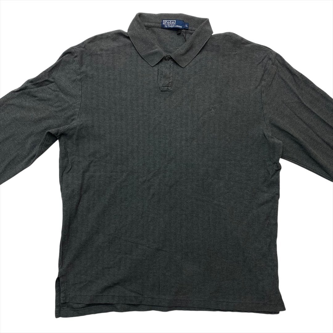 ポロ ラルフローレン ポロシャツ グレー POLO Ralph Lauren 古着 メンズ XL 長ポロ ストライプ 刺繍 ノームコア クリーニング済み taus2055