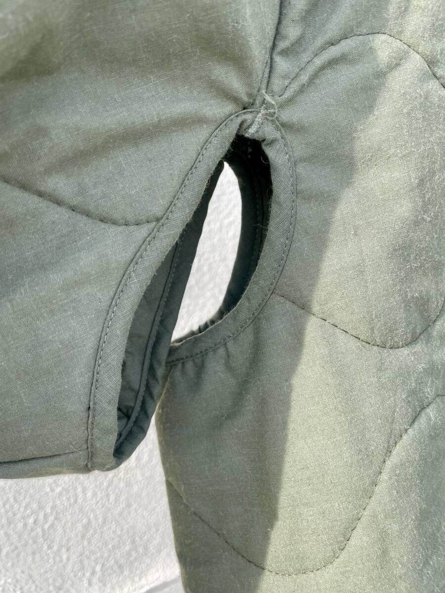M-65等の通常のナイロンライナーですと焚き火の近くでは着れませんが、こちらは耐火耐熱性能がありますのでキャンプなどで羽織って寒さを凌いだりするのにピッタリです。