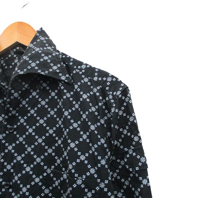 コムサイズム COMME CA ISM シャツ ブラウス 長袖 コットン 花柄 M ブラック 黒 /KT25 レディース