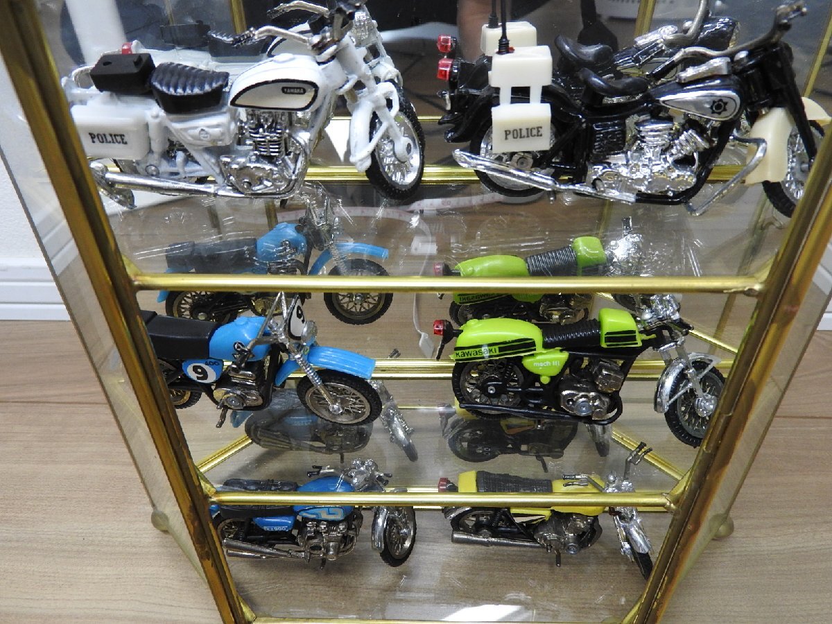 アンティーク コレクション ケース 棚 バイク ミニチュア ポリス カワサキ ヤマハ 他 6台付になります。 比較的綺麗な状態かと思います。 棚 多少変色ある部分ございます。 【サイズ】 棚 幅 22.5cm 奥行 5.5㎝ 高さ 21cm 写っているものが全てです。 状態も含めて写真にてご確認下さい。 | ||||