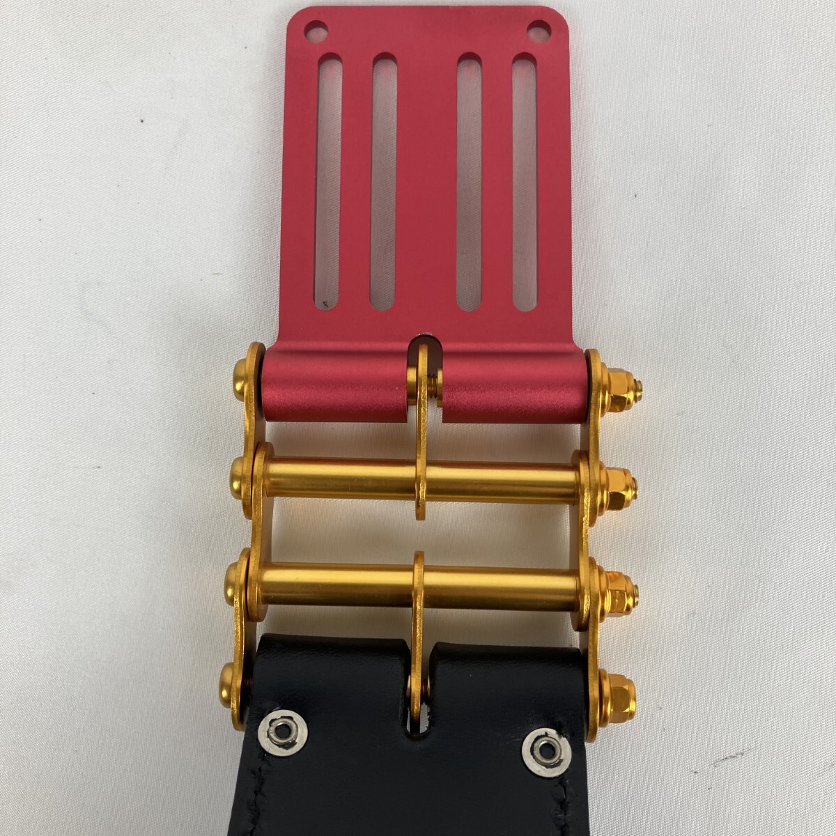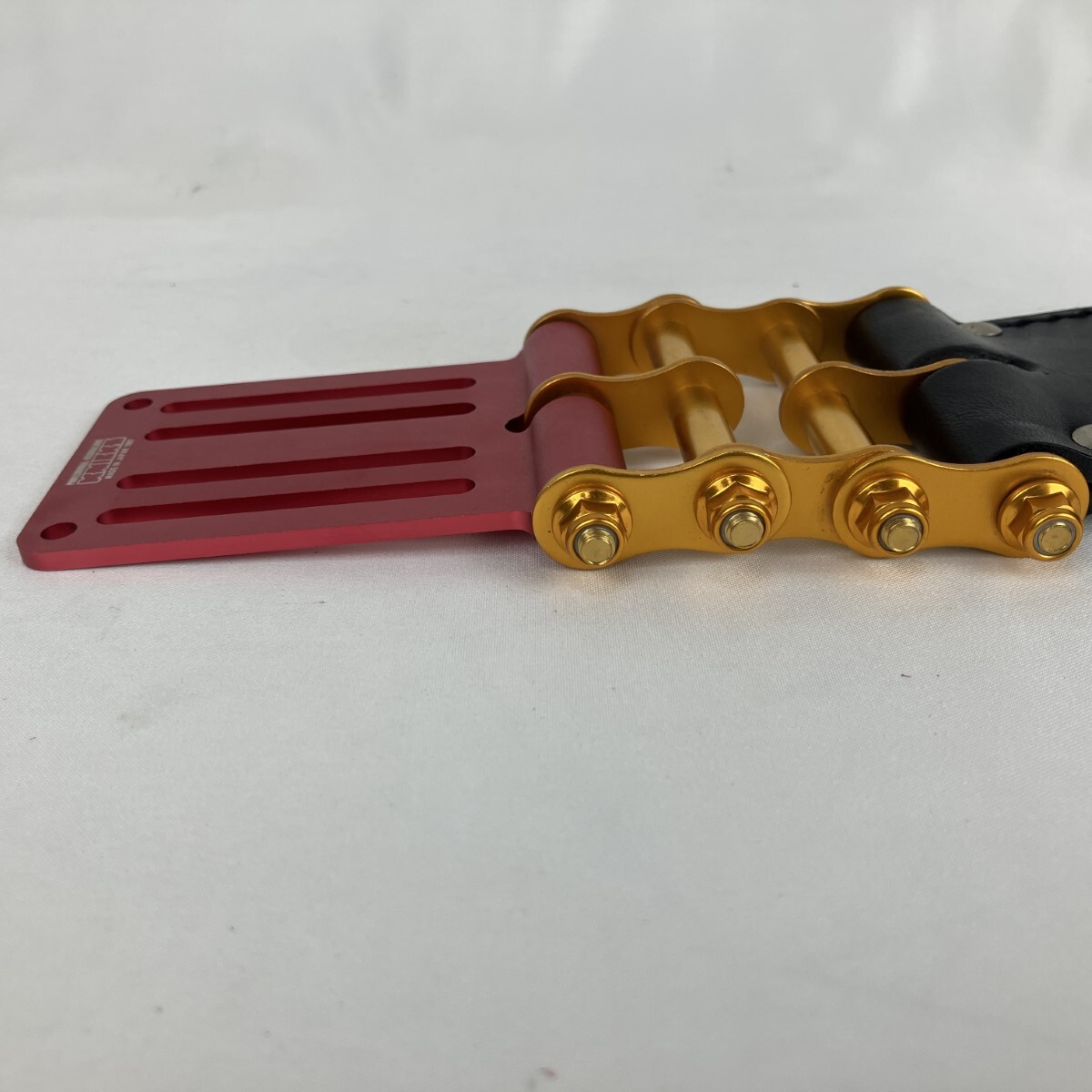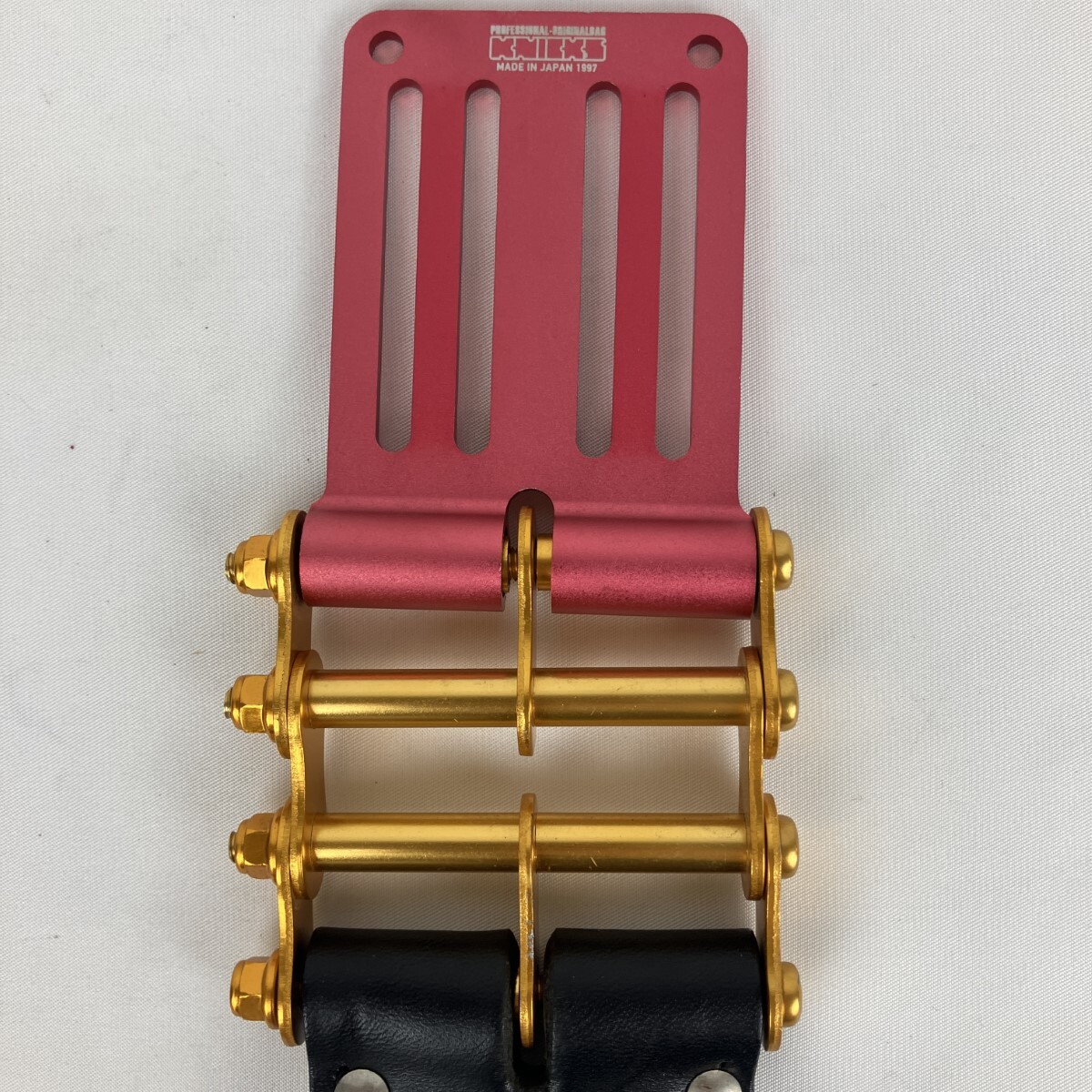 ЗЗ KNICKS 5分~1寸用 ヌメ革 ノミホルダー ベルトループ・チェーン金具付き KB-010DX ブラック×レッド×ゴールド やや傷や汚れあり