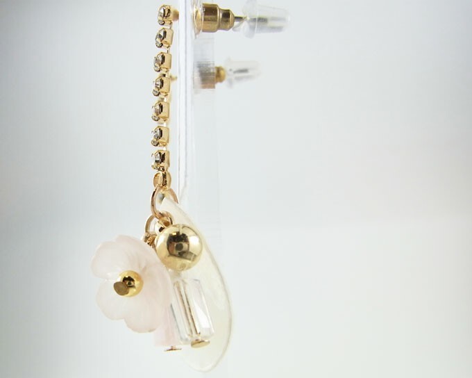花モチーフとラインストーン、パールが組み合わさった上品な揺れピアスが登場。やわらかな色合いでまとめているので、ふんわり女性らしい雰囲気になれます。繊細で華奢なデザインシルエットだから、ドレスやワンピースにもピッタリ。普段使いはもちろん、ちょっとしたデートやお出掛けにもピッタリ。デートや女子会、二次会、パーティー、イベントなどの華やかなシチュエーションにもおすすめです。【カラー】 ゴールド【サイズ】(最長部分)長さ:約4.5cm 幅:約1.4cm(平置採寸)◆関連ワード◆レディースアクセサリー ピアス フラワ- 花 クリア ラインスト-ン パ-ル ゴ-ルド 揺れ エレガンス クリスマスプレゼント バレンタイン ホワイトデー 結婚式 誕生日 母の日 限定 通販 ギフト プレゼントシステム上、通常販売価格表記となっておりますが、こちらの商品はセ-ル価格での販売となります。お使いのブラウザ環境によりカラ-の出方に誤差が出る場合がございます。こちらの商品は店頭販売も同時に行っておりますので、掲載中でも実店舗に在庫切れの場合ございます。何卒ご了承願います。