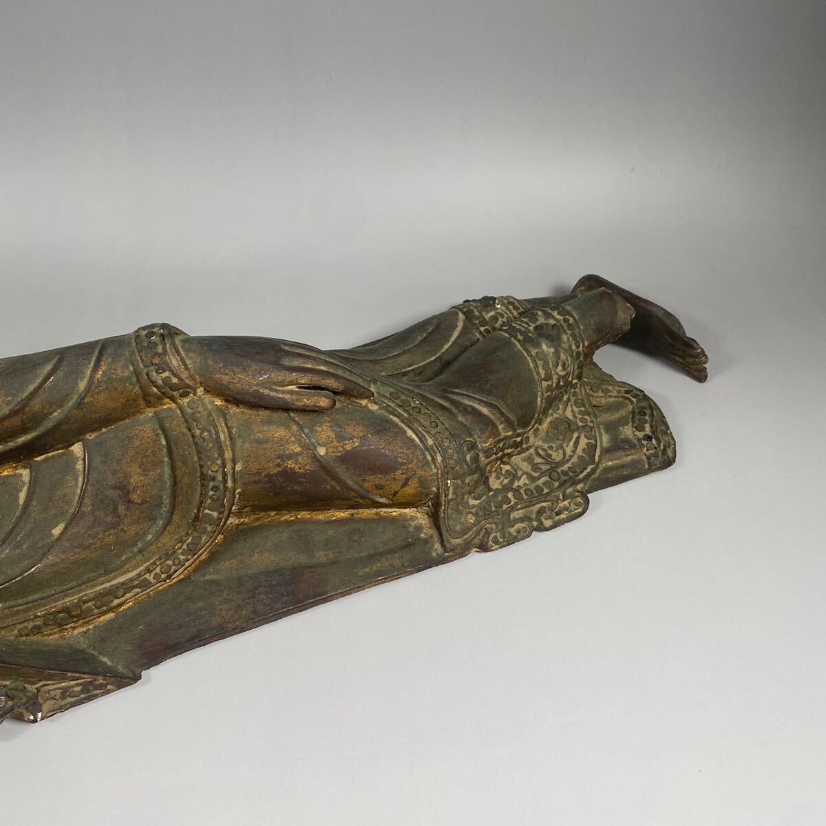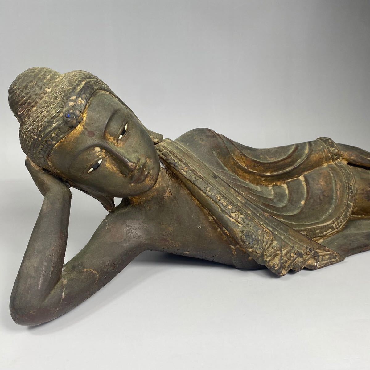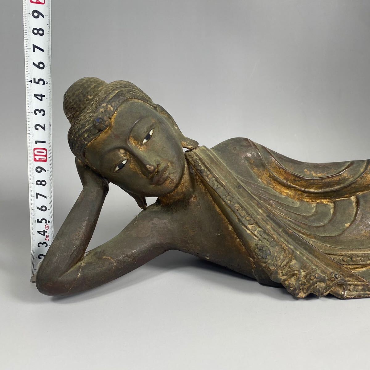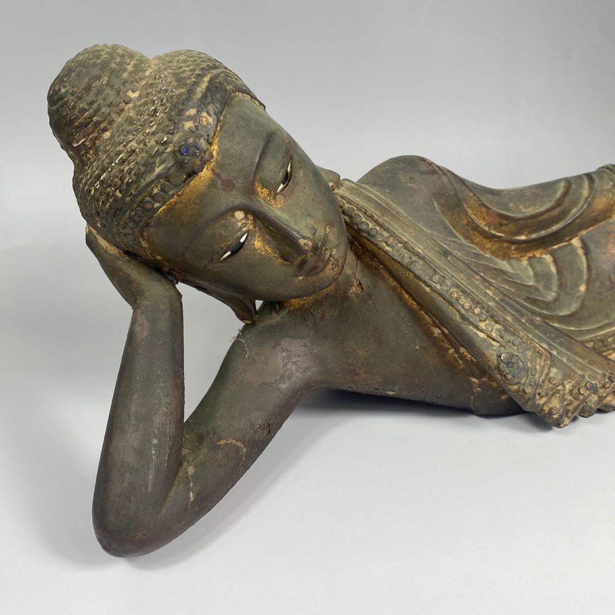 時代物 木彫り 涅槃像 涅槃仏 仏像 古美術 置物 骨董 美術品 仏陀 釈迦 ミャンマー 金仏 アンティーク 仏教美術