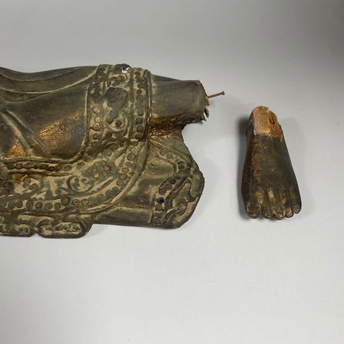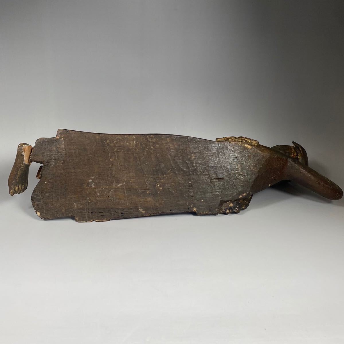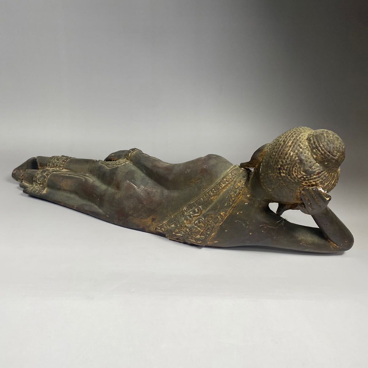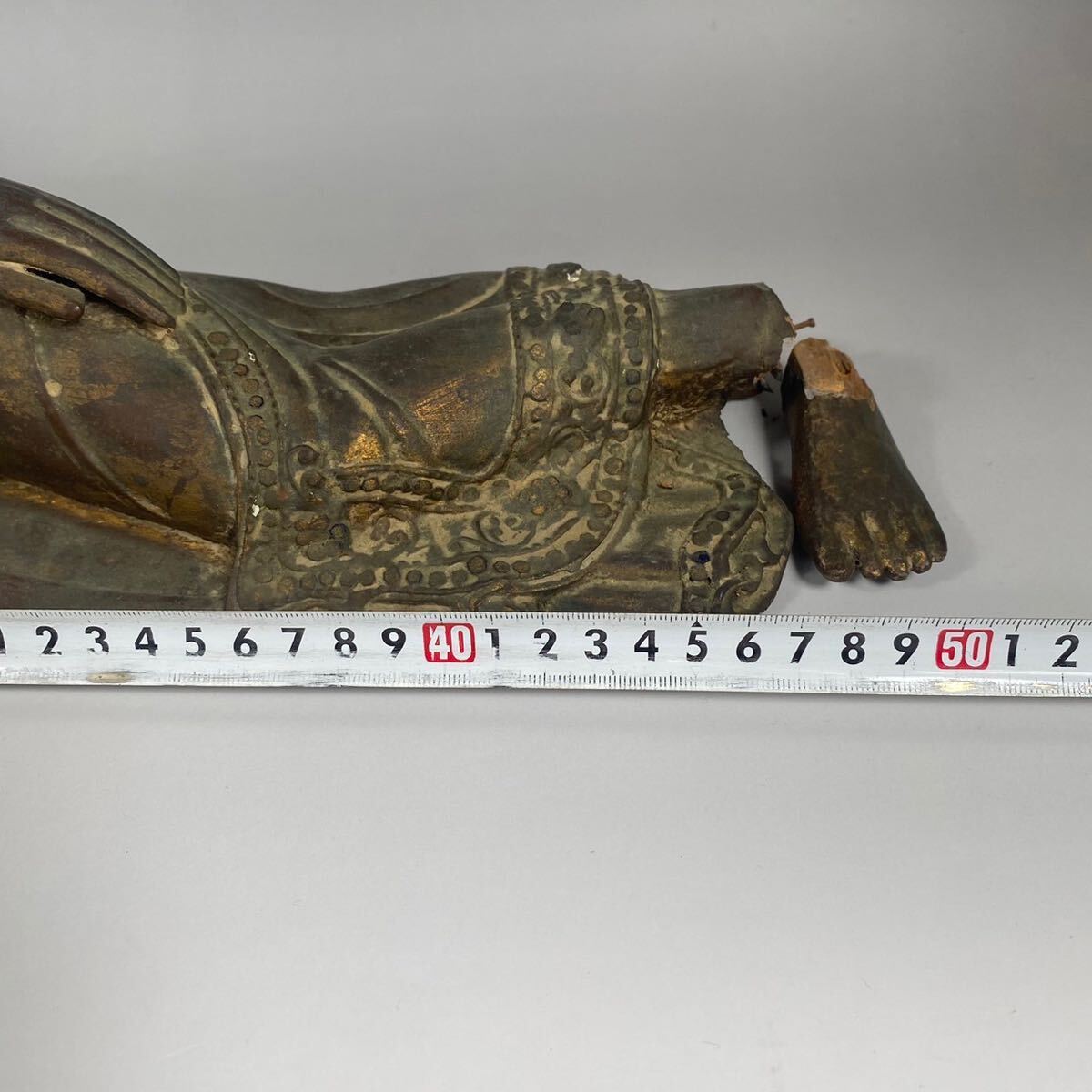 時代物 木彫り 涅槃像 涅槃仏 仏像 古美術 置物 骨董 美術品 仏陀 釈迦 ミャンマー 金仏 アンティーク 仏教美術