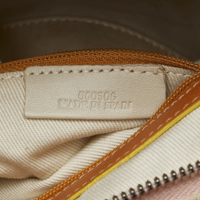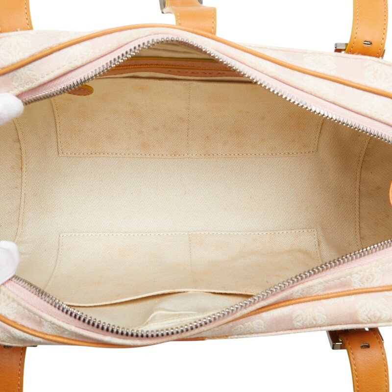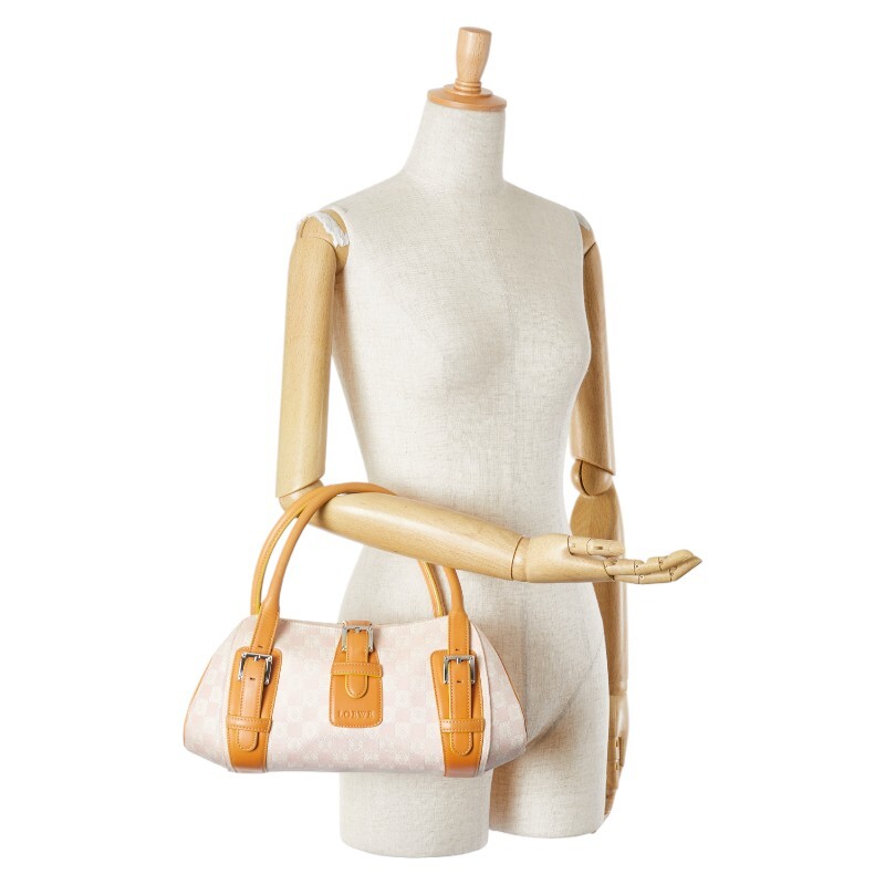 ロエベ アナグラム センダ ハンドバッグ ピンク ブラウン キャンバス レザー レディース LOEWE 【中古】
