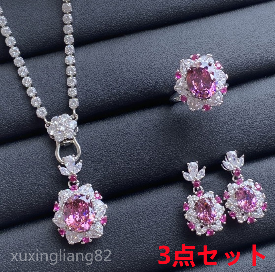 極美 満々ジルコン ジュエリー3点 ネックレス ピアス リング フリーサイズ キラキラ光る アクセサリー