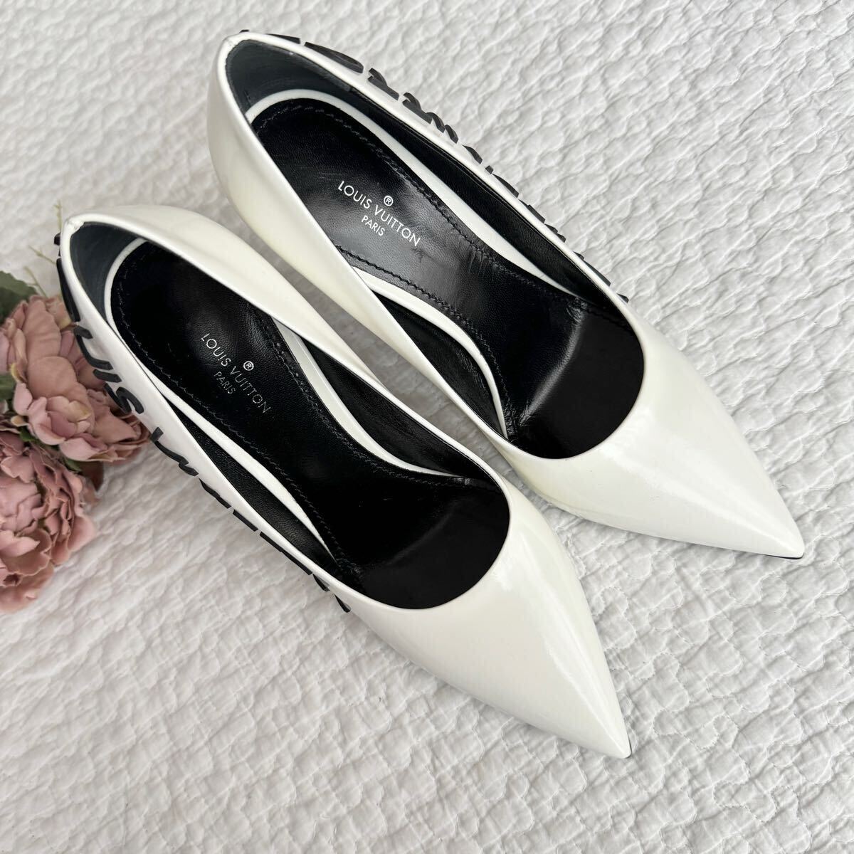 ヴィトン コールバックライン レザー ロゴ パンプス 白