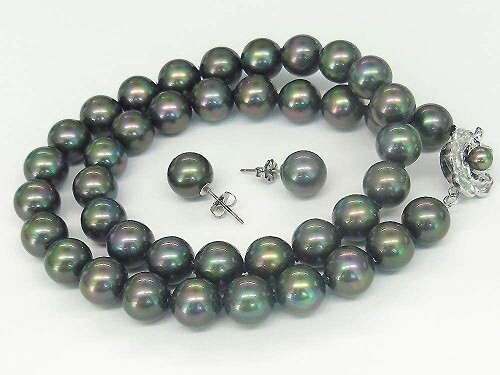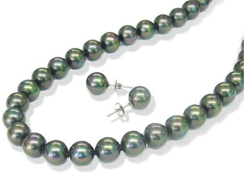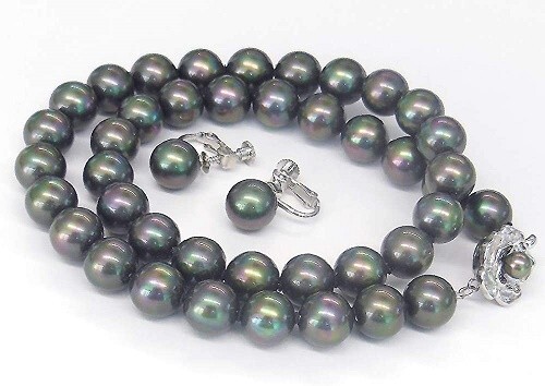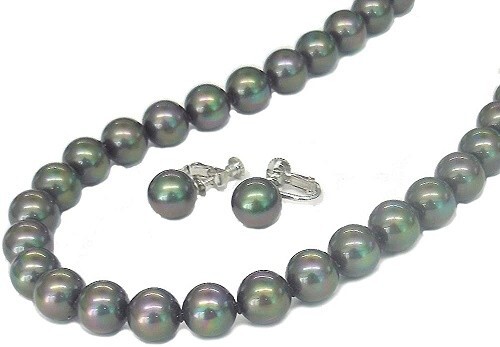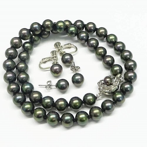 ◆黒蝶貝パール/約8.0mmアップ(ネック・イヤリング共)ブラックシリコン入り