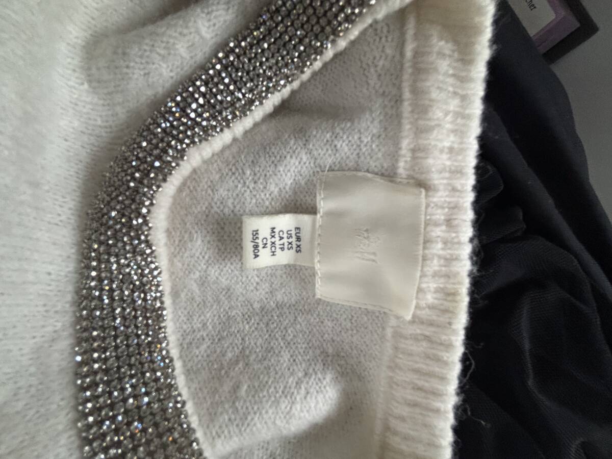 美品・H&M・レディース・長袖ニット・トップス・ホワイト・USサイズXS・Mサイズ相当・280円