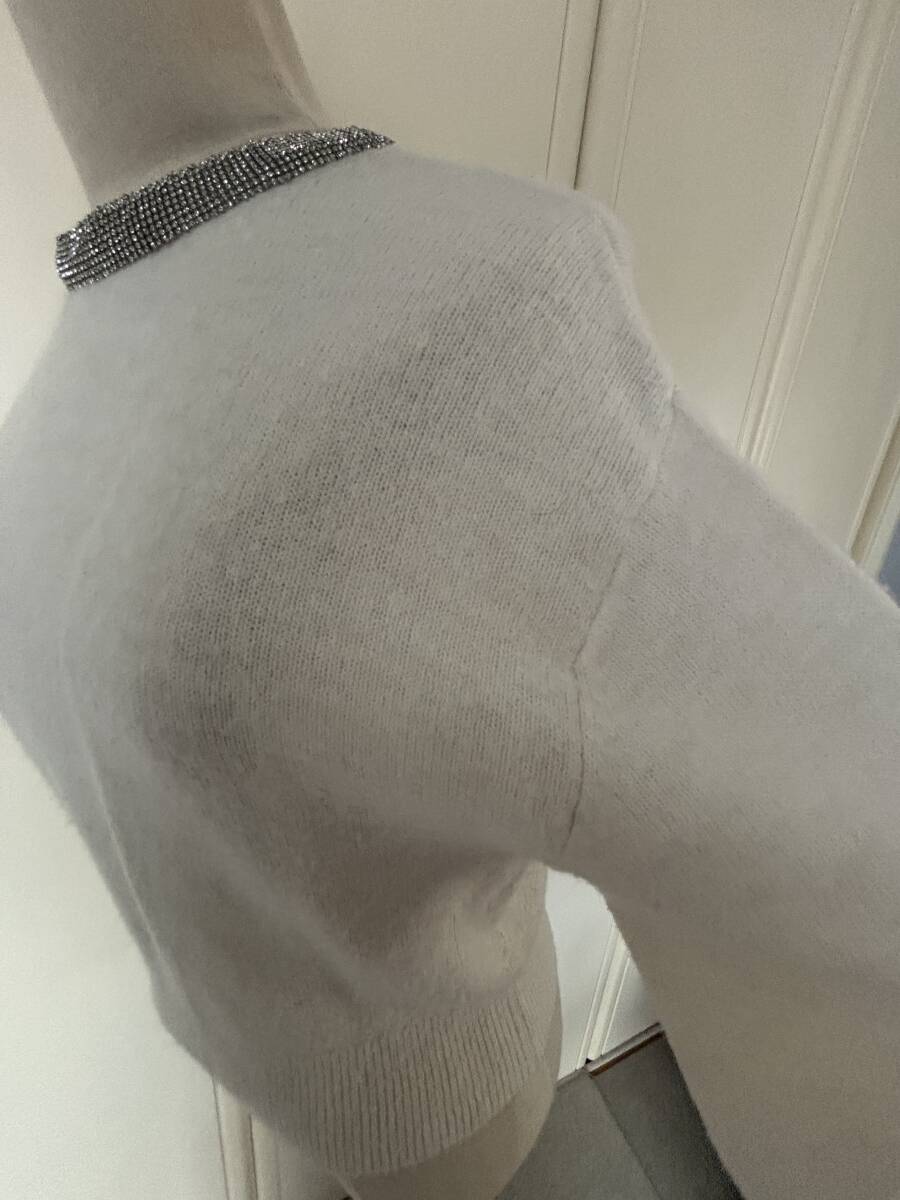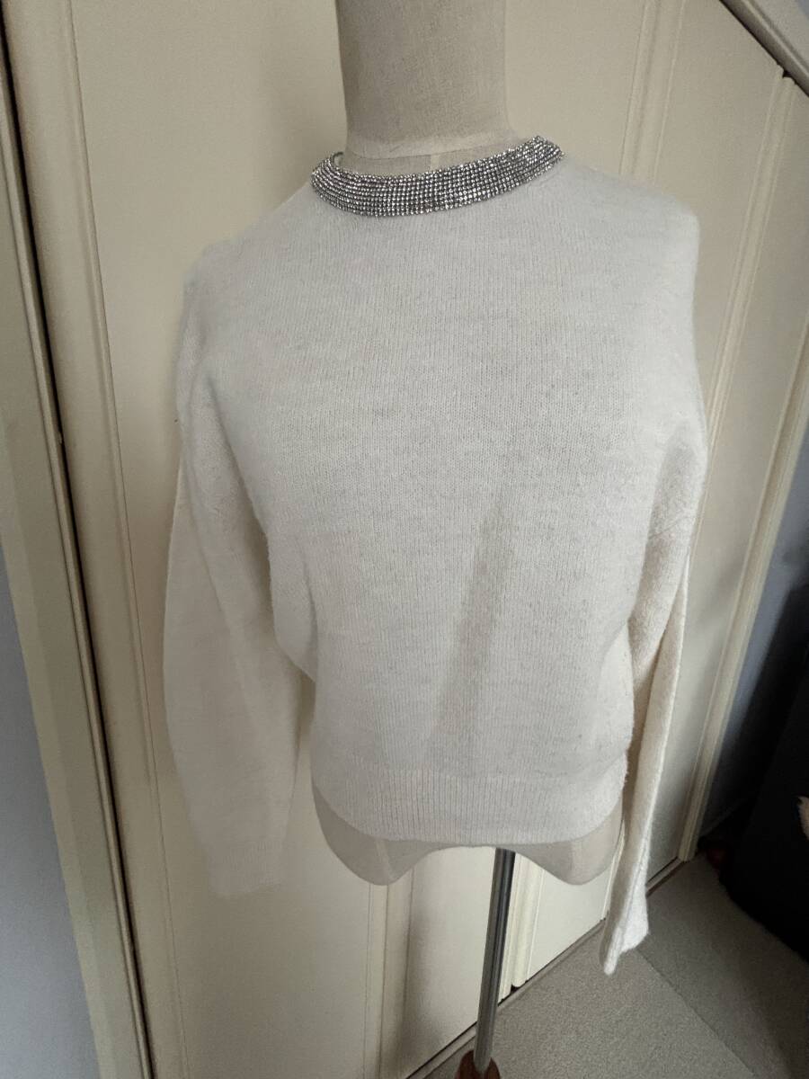 襟周りのラインストーンが綺麗なニットのご紹介です。