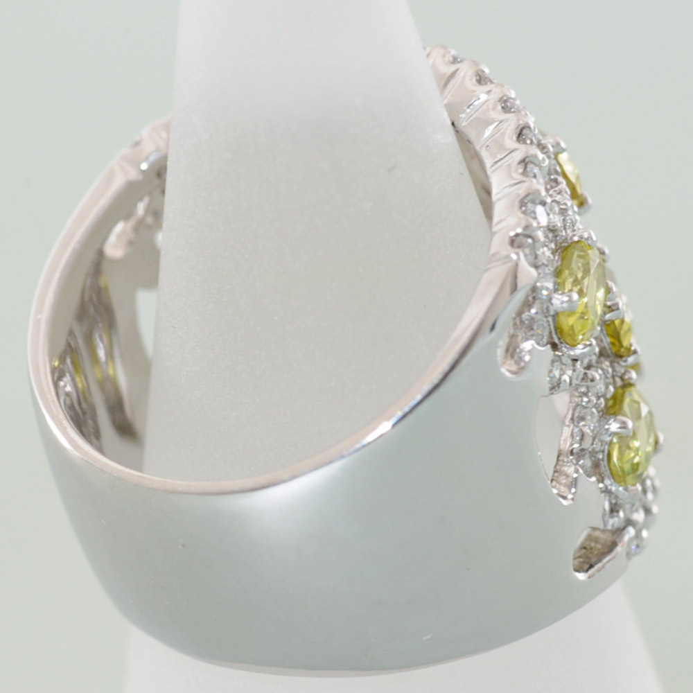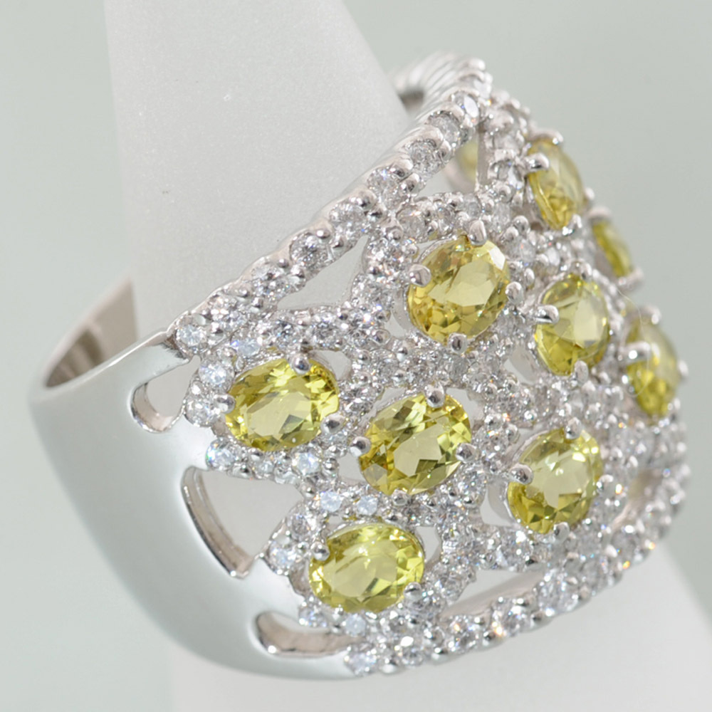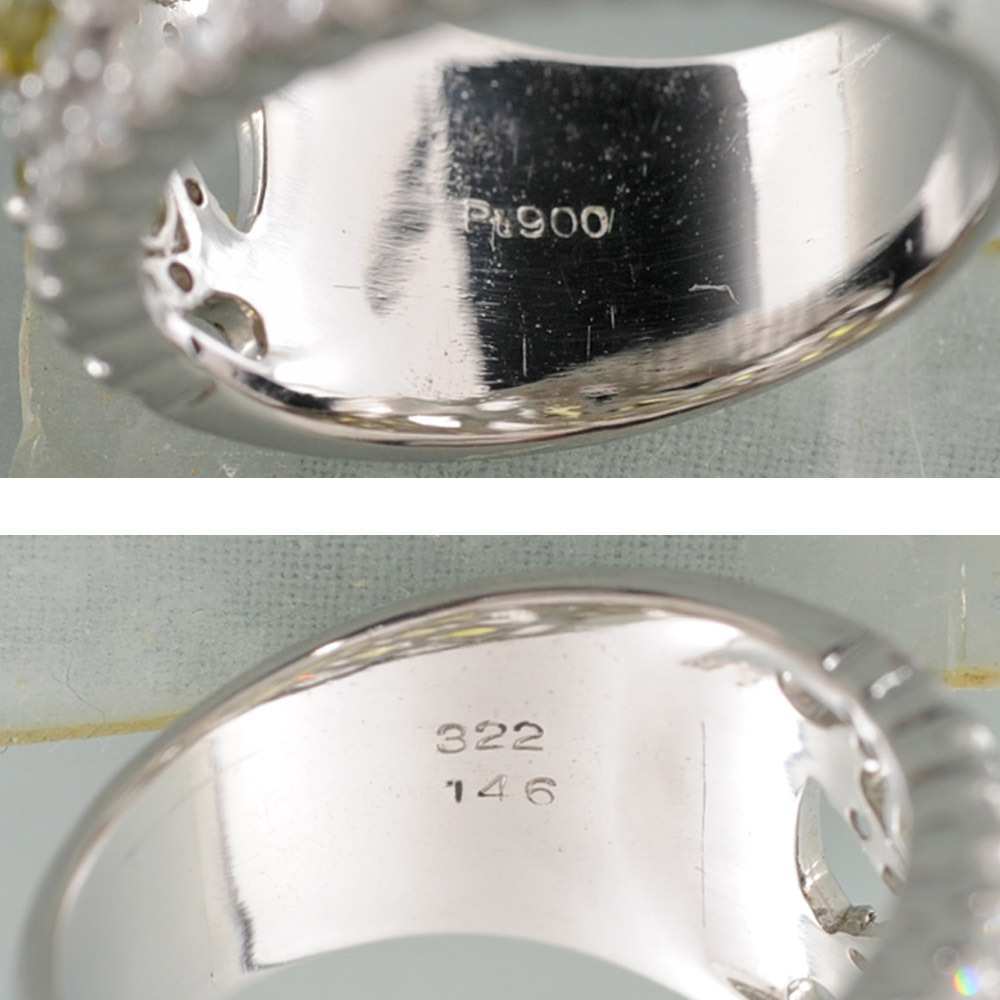 ● 【D67】 Pt900 プラチナ ペリドット 3.22ct メレダイヤモンド 1.46ct デザイン リング 指輪 中古品仕上げ済み
