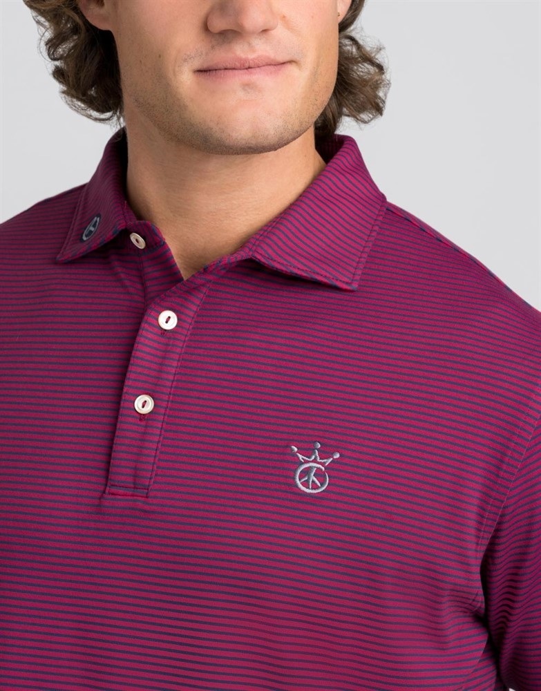 ピーター・ミラー社製の吸湿発散性、UPF 50+ 日焼け防止機能、防臭性、お手入れのしやすさを特徴とするソフト ジャージー生地 (ポリエステル 92%、スパンデックス 8%) を使用した長袖パフォーマンス ポロシャツです。