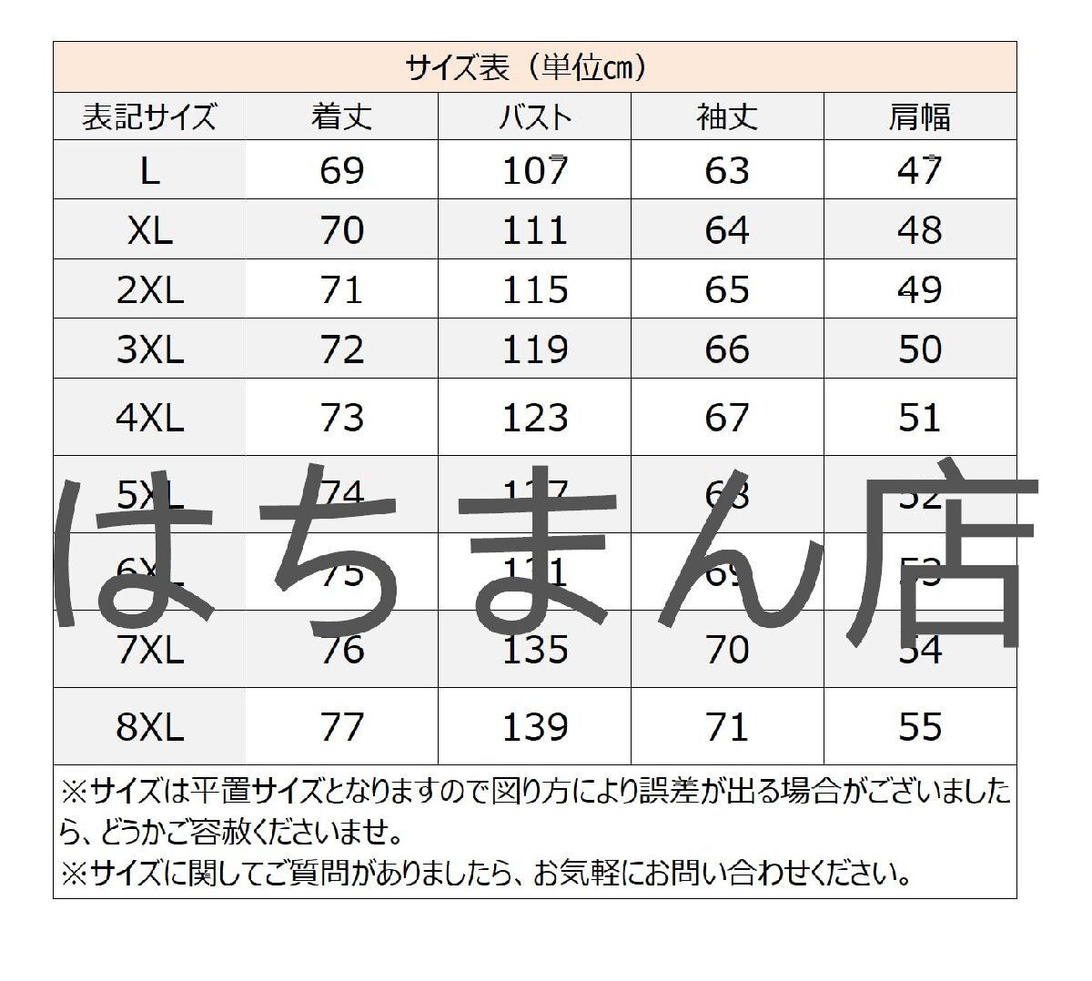 【4XL】:バスト123cm、肩幅51cm、着丈73cm、袖丈67cm /【5XL】: バスト127cm、肩幅52cm、着丈45cm、袖丈68cm。店舗をご確認ください:はちまん店、他の同デザインは全て海賊版でございます、品質は保証されていません、慎重に購入してください。