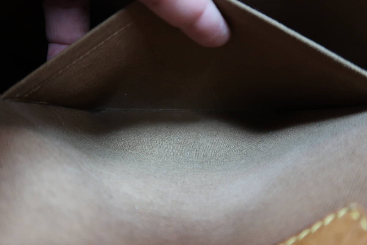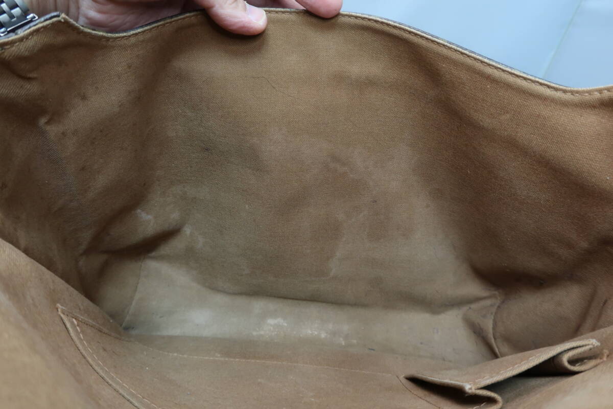 <外側> | バッグ縁取りのヌメ革を私が交換しております。素材はヌメ革です。 使用感ありますが良品です。 左右のショルダーの付け根を私が交換しております。こちらもヌメ革です。 交換していない部分のヌメ革に使用感を強く感じます。 |