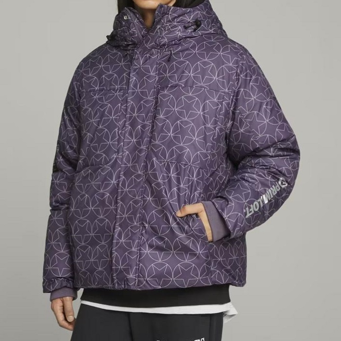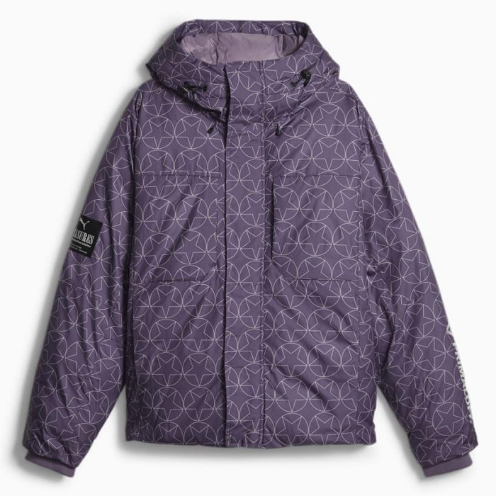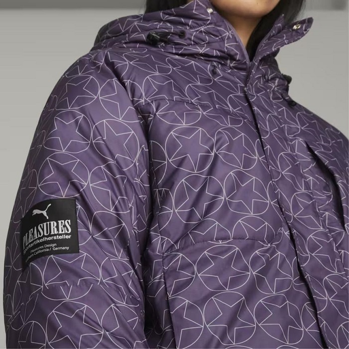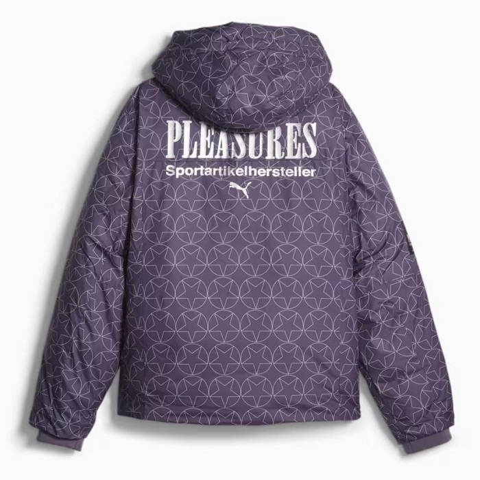 プーマ プレジャーズ コラボ フード付き パファージャケット USサイズM (L相当) 定価49500円 パープル ムラサキ 星柄 PLEASURES 中綿