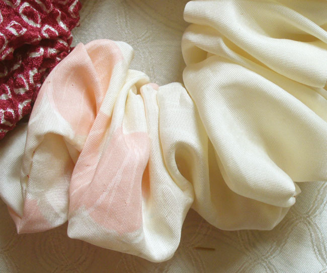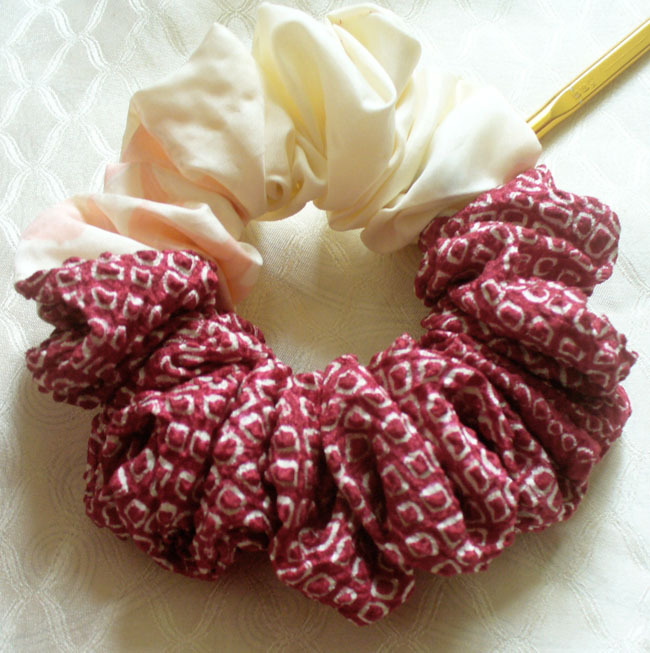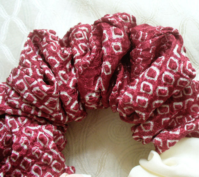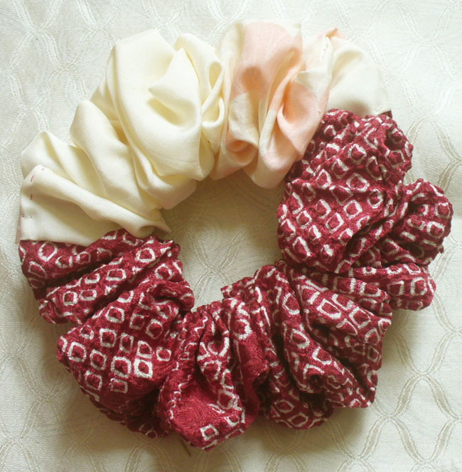 ゴム交換可能 総絞り鹿の子 羽裏 細幅 フリル シュシュ 着物リメイク シルク 和柄 手縫い ハンドメイド リメイク 着物 和物